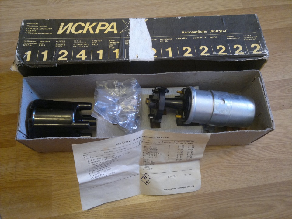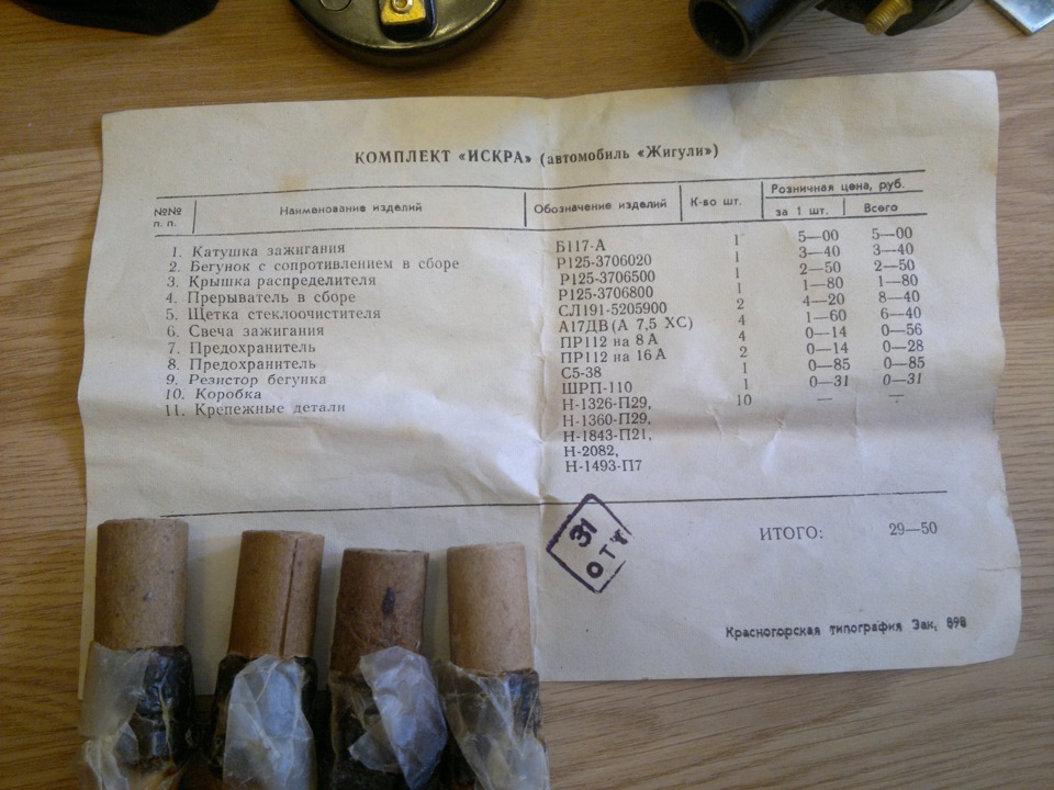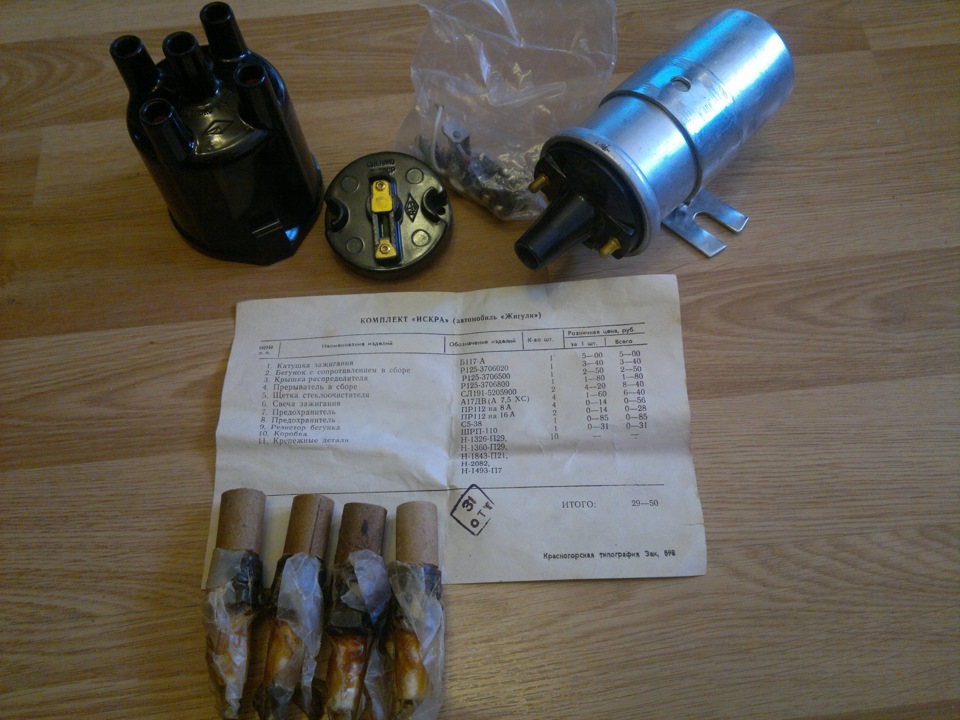 Получил сегодня на почте долгожданные пепельницы и щётки дворников. (там правда ещё набор Искра, в него входит катушка, крышка трамблёра, бегунок, контакты прерывателя и свечи, из всего набора на мою машинку только щётки нужны были). Всё новое СССР.
