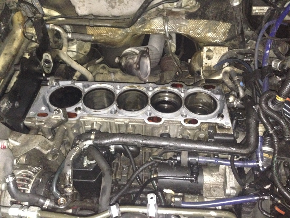 Все никак не доходили руки сделать одну мааааленькую запись в БЖ о большом ремонте. Забегая на перед скажу что, кто то знает, кто то нет, но не так давно, собственно говоря в моей черной комете прогорел один поршень. Так мало того что прогорел, немного расплавился и как говорят в народе «стек в поддон», до поддона не дошло он остался на шатуне))) Так же выбило кусок поршня на выпуск в турбину и как следствие турбине тоже пришел гагер. Пошло масло через вентиляцию картерных газов, погнало масло и турбина, в общем все в масле… Что тут еще можно сказать попахивало дело съемом головы и тд., в общем внеплановая капиталка…