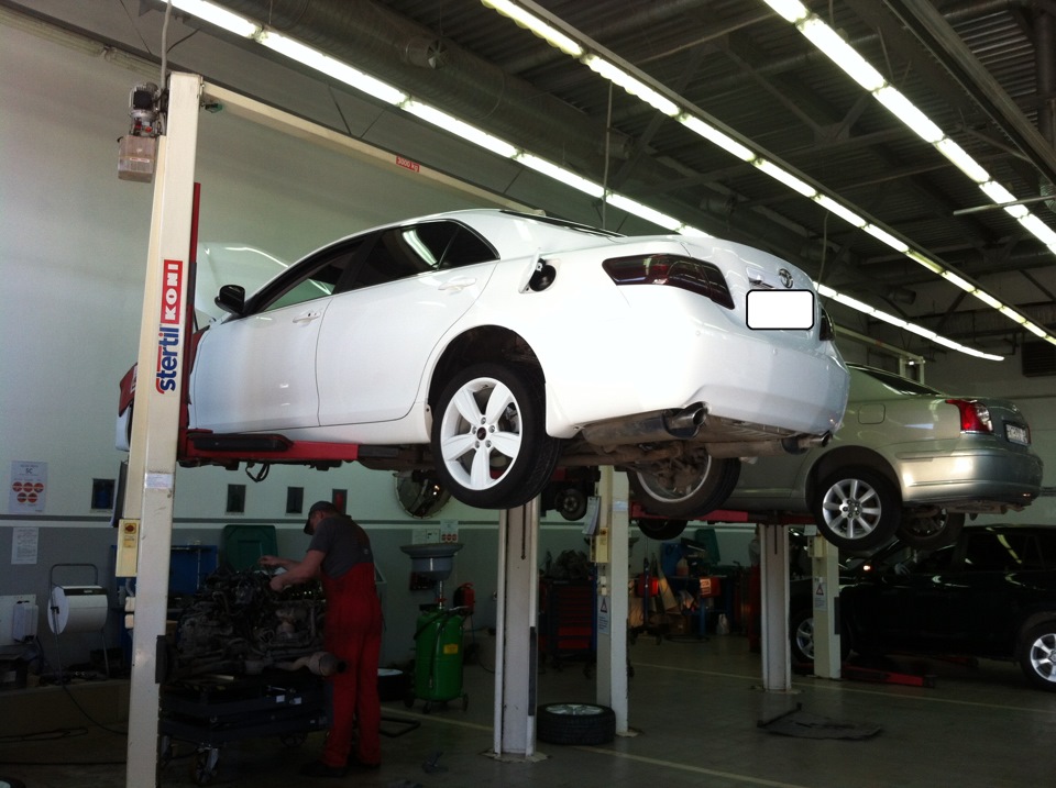 Когда недавно я делал ТО – 110 тыс. км., то по соседству на подъемнике висела белая Камри 40 V6 с выкорчеванным двигателем. Она вызвала у меня интерес и я решил об этом с вами поделиться.