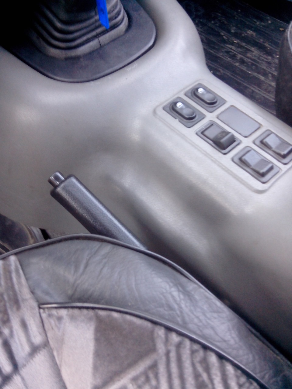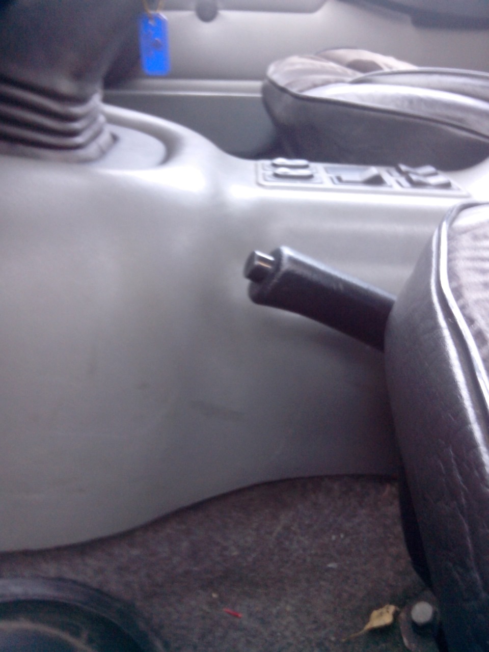Сделать-то сделал, но теперь родной ручник стал упираться и вообще казался каким-то инородним предметом. Выход нашёл опять-же здесь и на форуме-ручник от "Калины". Поехал в магазин и приобёл сиё изделие за 475 руб. Следующие выходные занимался слесарными работами т.е. резал, сверлил, подгонял, попутно вспомнил очень много матюков, даже которые не знал, придумал новые :) Наеб…ся "до икоты". Но чёрт возьми оно того стоило. Как-же удобно! Руку опускаешь и вот он ручник, три щелчка и машина стоит.