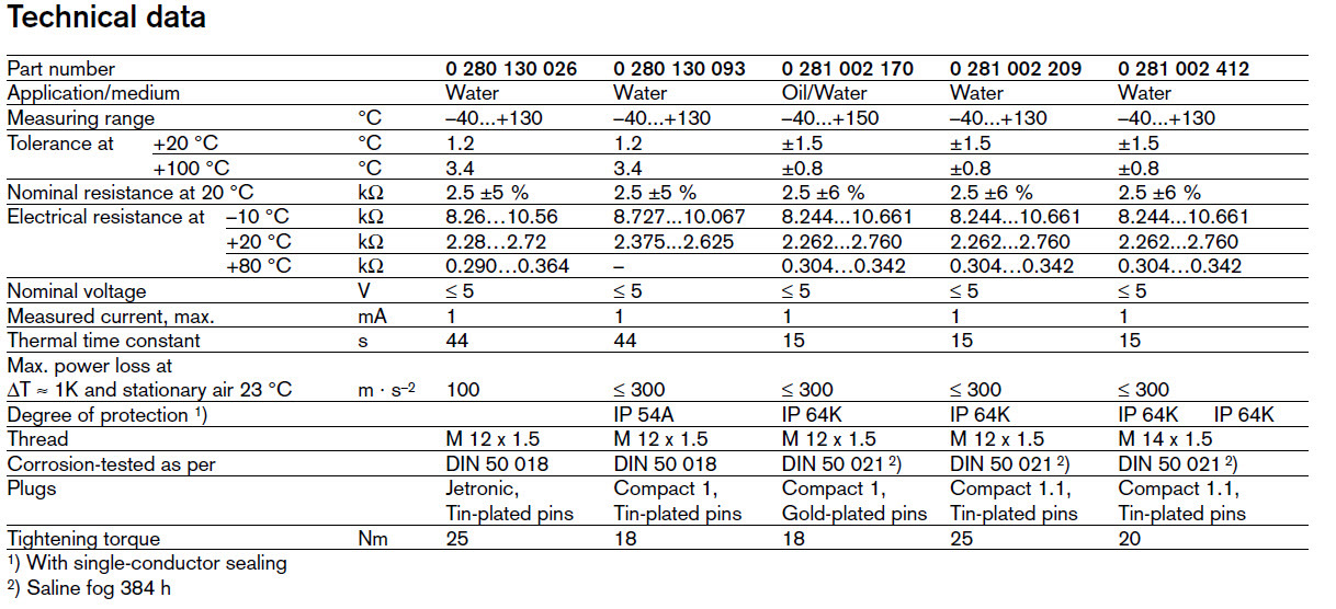Таким образом Bosch 0281002209 — единогласный лидер по всем потребительским качествам. Крайне рекомендуется к установке взамен штатного для получения более адекватных сведений о состоянии температуры ДВС как водителем, так и ЭБУ, что в свою очередь должно положительно сказаться на расходе топлива и "приемистости" авто.