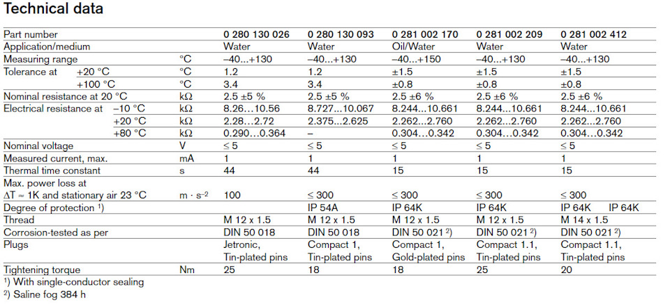 Мы с SeregaSmiles решили подойти с другой стороны: проверить сам датчик температуры. Посмотреть его инертность, погрешности измерения на разных температурах. Для этого погрузились в документацию по NTC-датчикам Bosch температур жидкостей. И найденная информация вызвала бурю эмоций.