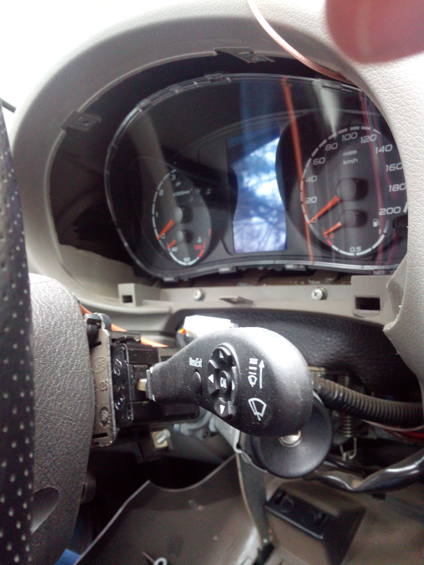 Приветствую. Подскажите что значит значек справа внизу под дисплеем на той картинке где приборка ещё не закрыта облицовкой и на дисплее предупреждение о навигации. Что он значит и как работает?