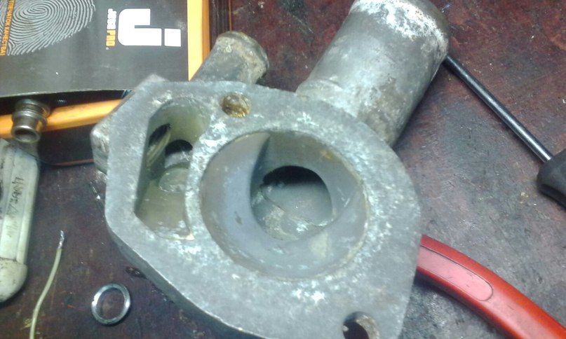 Крышка которая досталась с двигателем отверстия под датчик температуры не имела, потому была попилена в тренировочных целях. :))) Шире дале, Паша dirtrider подогнал нужную крышку с отверстием под датчик. И все бы хорошо, если бы в этом отверстии не торчала резьбовая заглушка, которую мы с ним не смогли выкрутить год назад :))) Но это происходило ночью на парковке у дома и шанса на ошибку не было, а сейчас у меня в руках была дрель, сверла и горячее желание жечь, потому в этот раз шансов не было у заглушки :)))