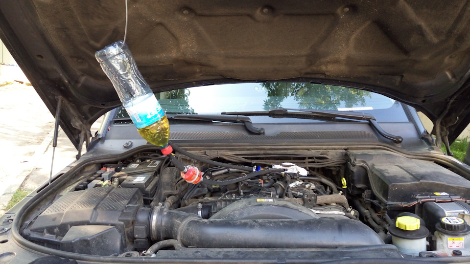В конце накачал соляры путем вставки предохранителя на место и прогнал по системе промывки, чтоб жидкость эта гадкая в бак не пошла.