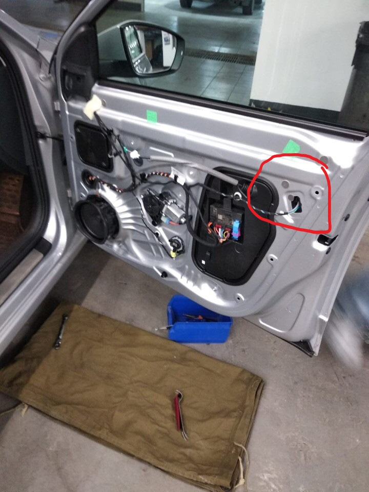 Дребезжат передние двери на А7 FL при включенной музыке и езде по шероховатой дороге, началось при пробеге в 4.000км, сейчас 15.000км. По ощущениям звук идет где-то в районе пластиковых декоративных накладок, либо в районе дверного замка, примерно в отмеченной красной зоне.