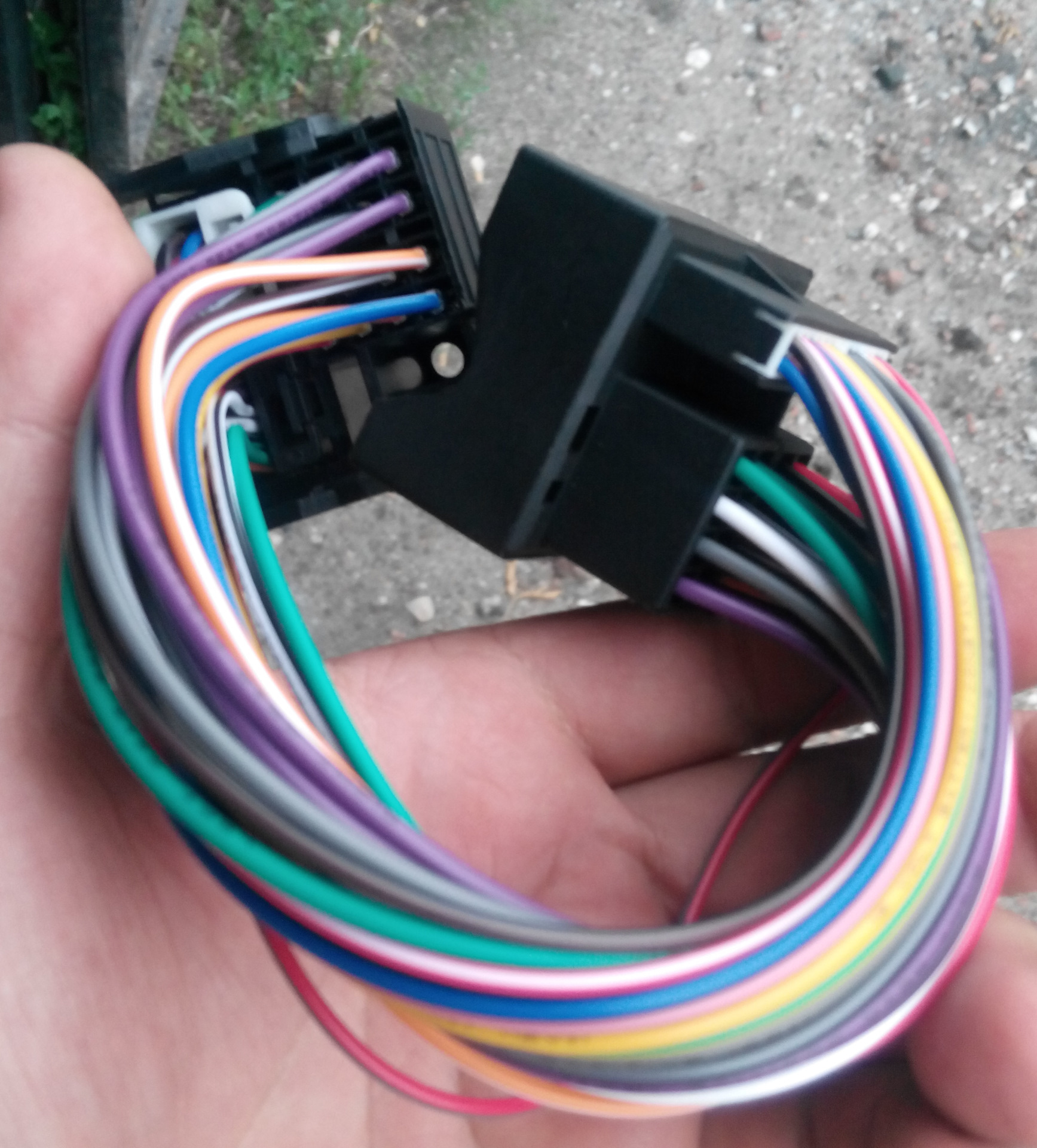 В статье описано как эту проводку делать своими руками. Покупать колодку, пины и переходник ISO папа ISO мама + провода. Или на разборках колодку можно взять ту которая к дисплею идёт и перепиновать. Я так и сделал.