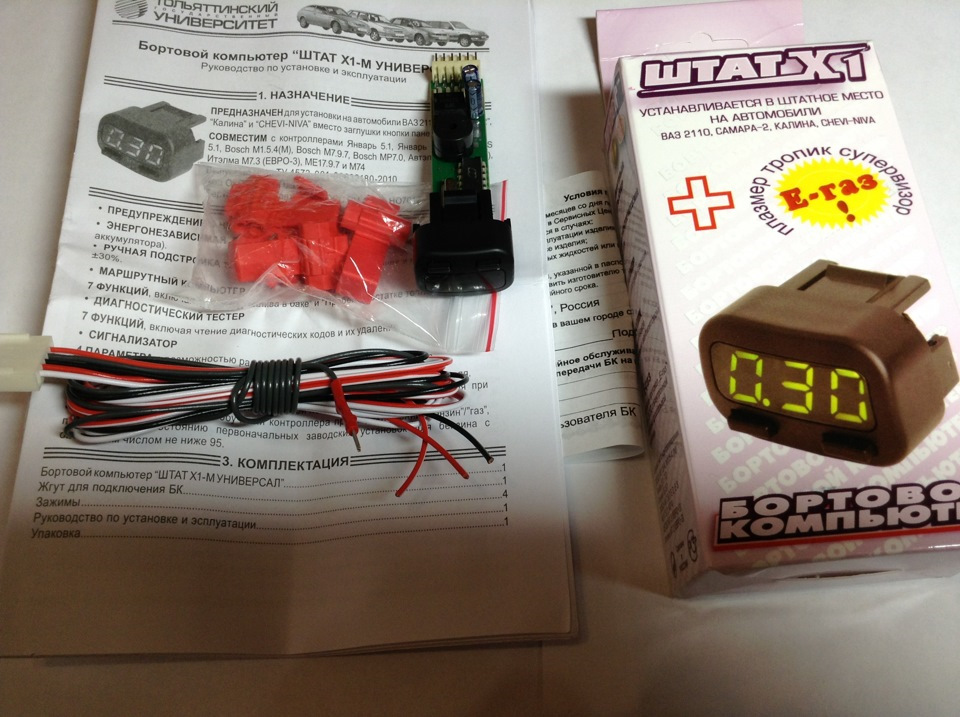 Т.к. машина продана, то остались ещё некоторые ништяки. В данный момент нашёл свой бортовик Штат Х-1, очень компактный, маленький, ставится вместо кнопки.Функционал очень широкий, читает ошибки, может сдвигать температуру включения вентилятора охлаждения.