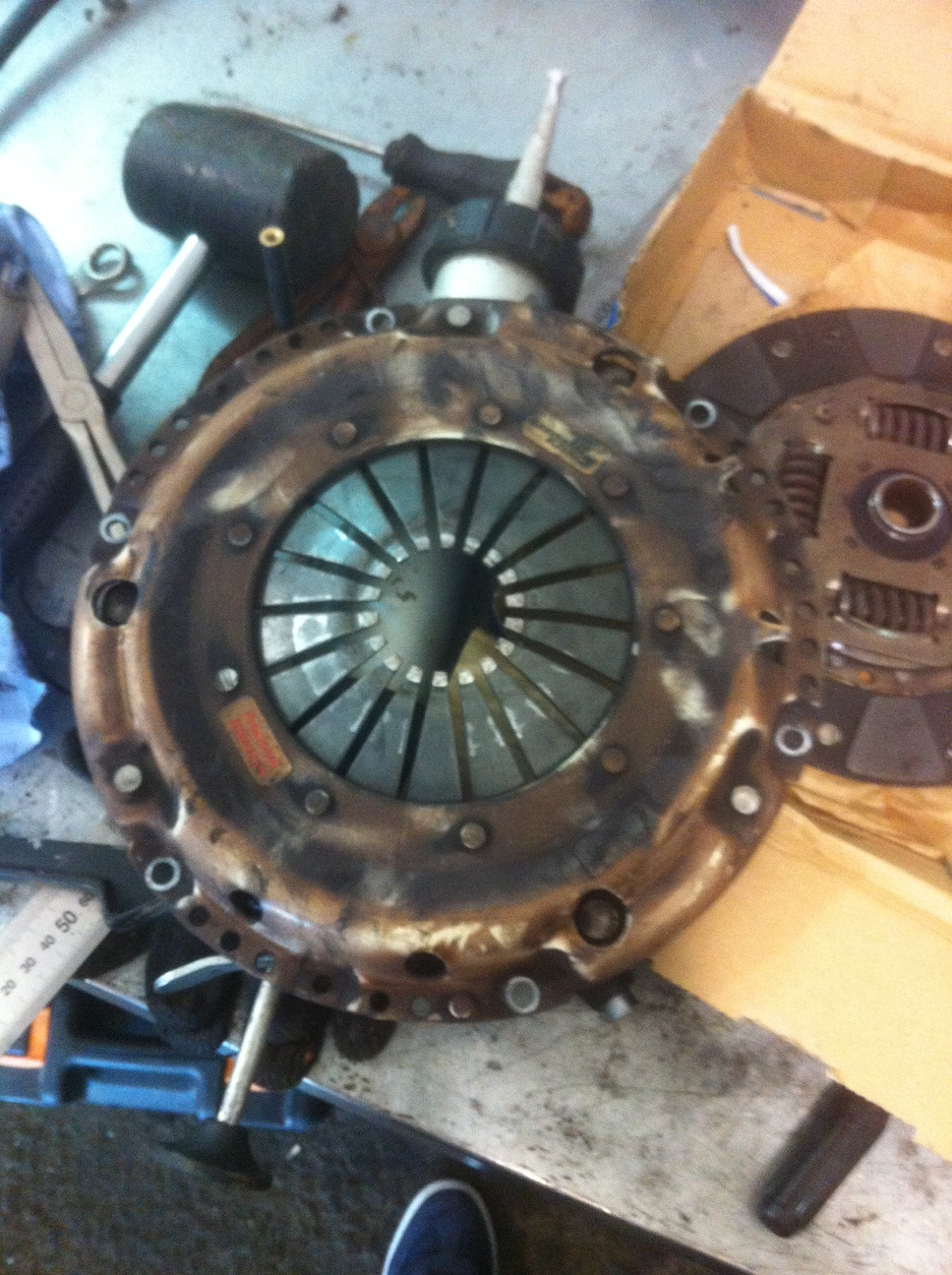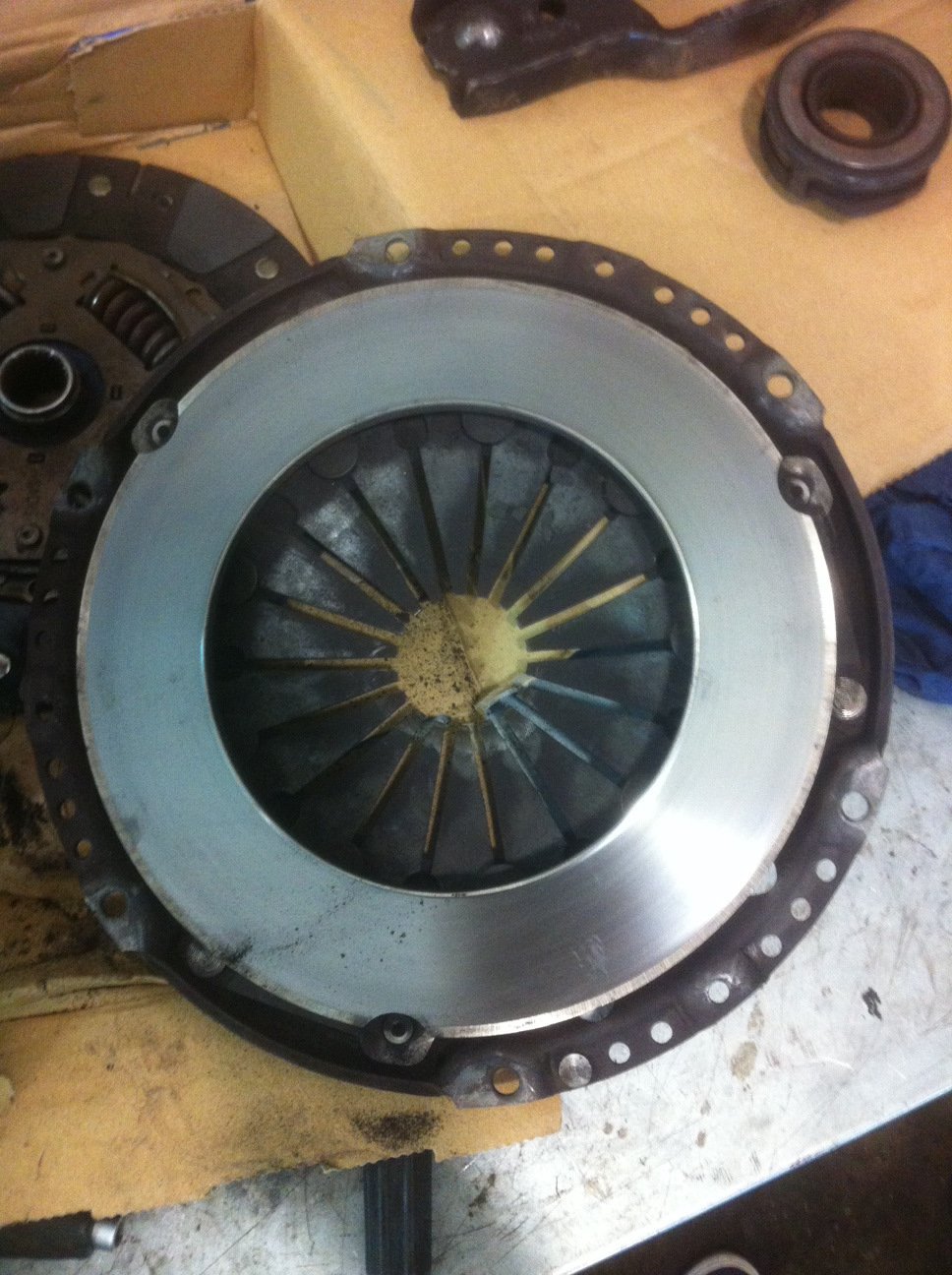 По тихоньку собираем все обратно, меня все равно колотит, ибо не знаю, адекватно ли будет работать новое сцепление на этом маховике. Но пока шел процесс сборки, я принялся изучать, что осталось от комплекта Клатч.