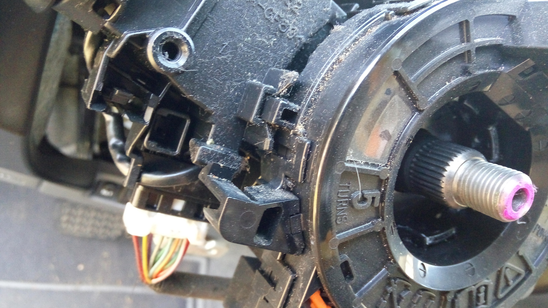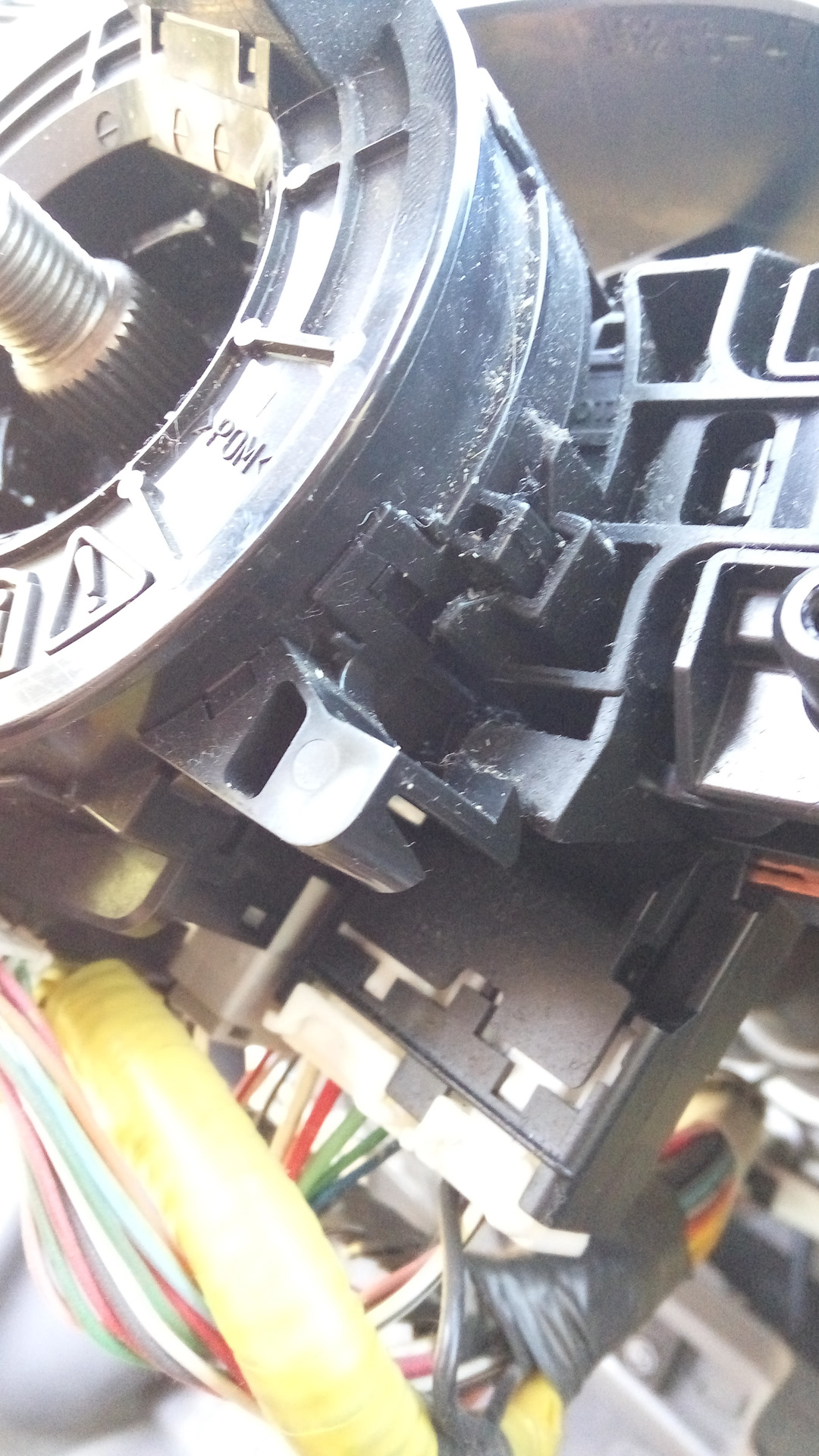 Теперь нужно с старого шлефа переставить на новый шлейф датчик положения руля (процесс не сфотографирован). Держится на трех защелка. Как снять думаю сами догадаетесь.