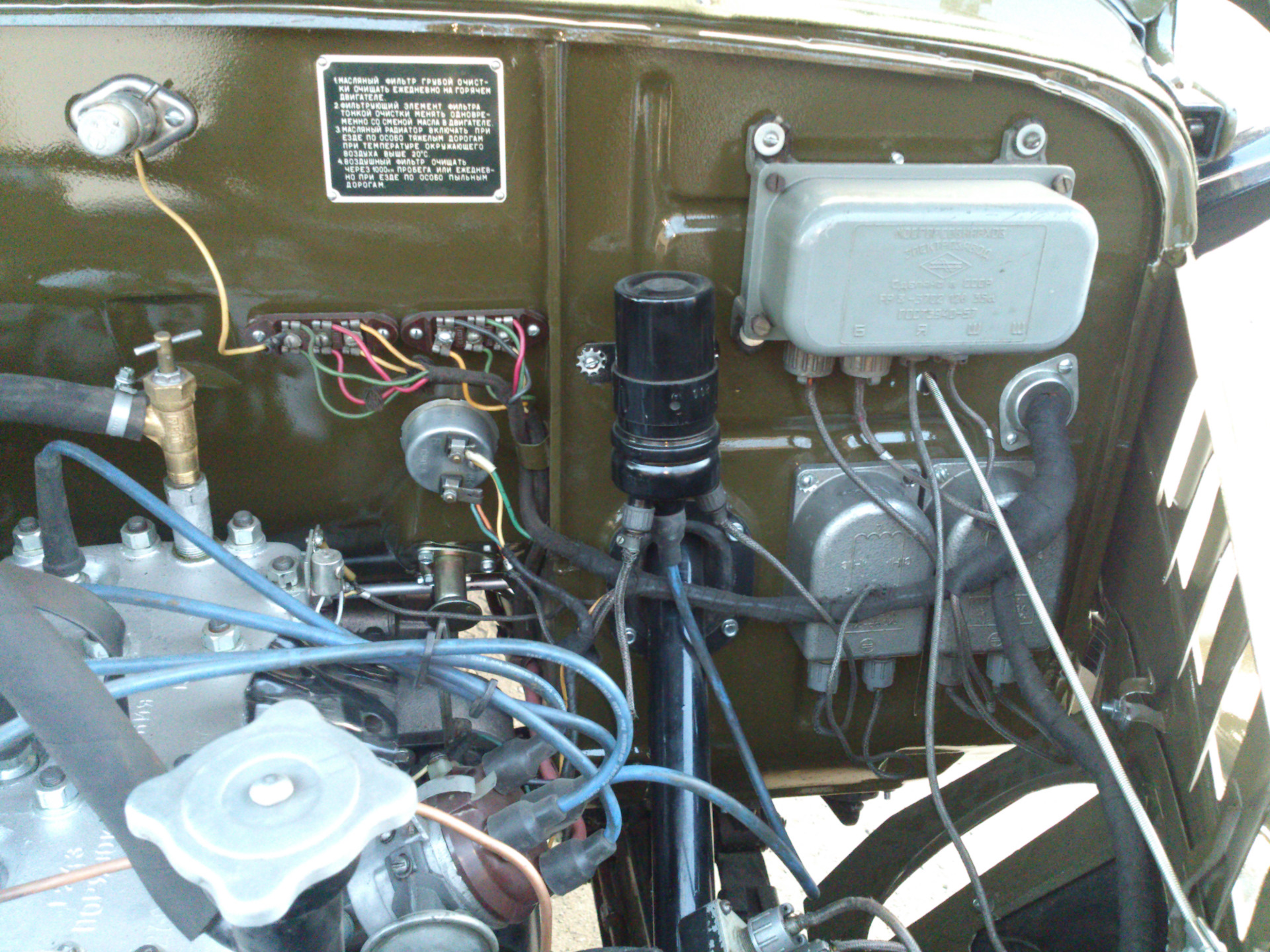 А медная трубка куда идет из-за генератора? Слева от катушки зажигания с двумя контактами бочонок для чего?Зеркало так должно крепится? У меня с правой стороны остаток такой трубки торчит…А машина и состояние супер!