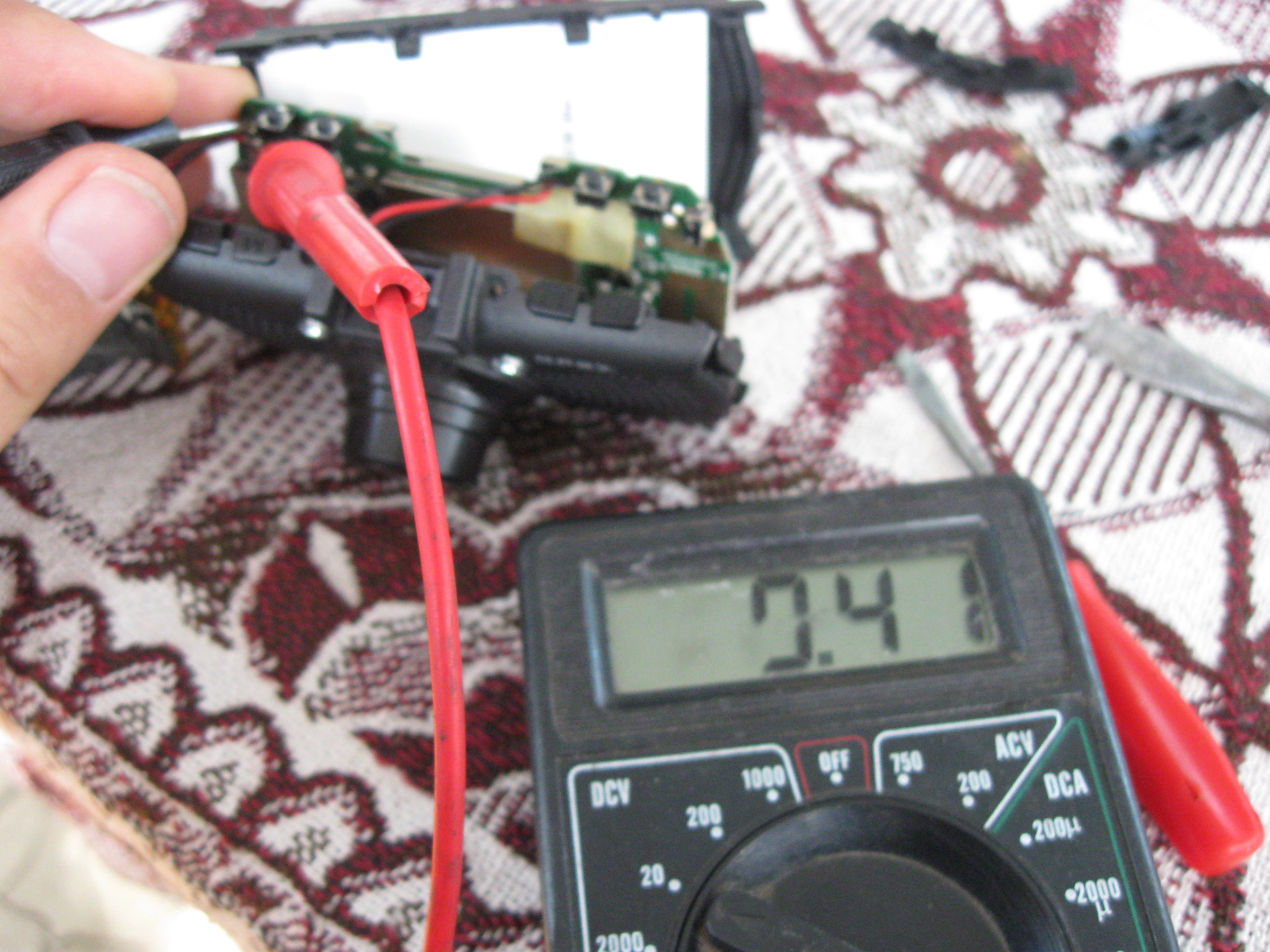 Как мерял — не помню. Аккум был вздутый, то есть дохляк 100%. Поменял на такой же китайский, так сдох тоже очень быстро. Сейчас езжу опять с батарейкой от нокии.