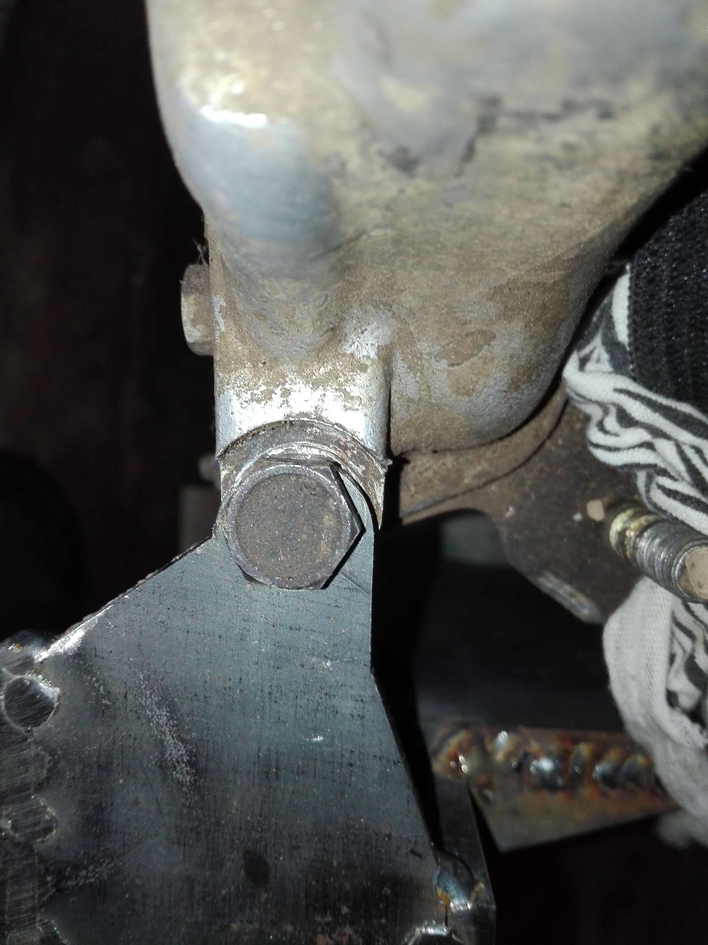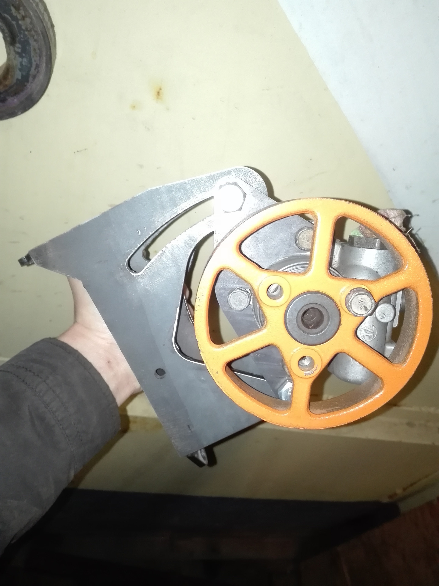 Сварил кронштейн, примерял его на двигатель
