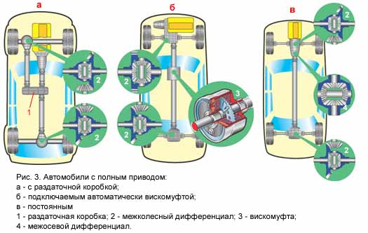 На рисунке это тип "в", все автомобили такого типа оснащены межосевым дифференциалом, он позволяет при повороте ведущим колёсам вращаться с разными скоростями, что предотвращает проскальзывание и пробуксовку.