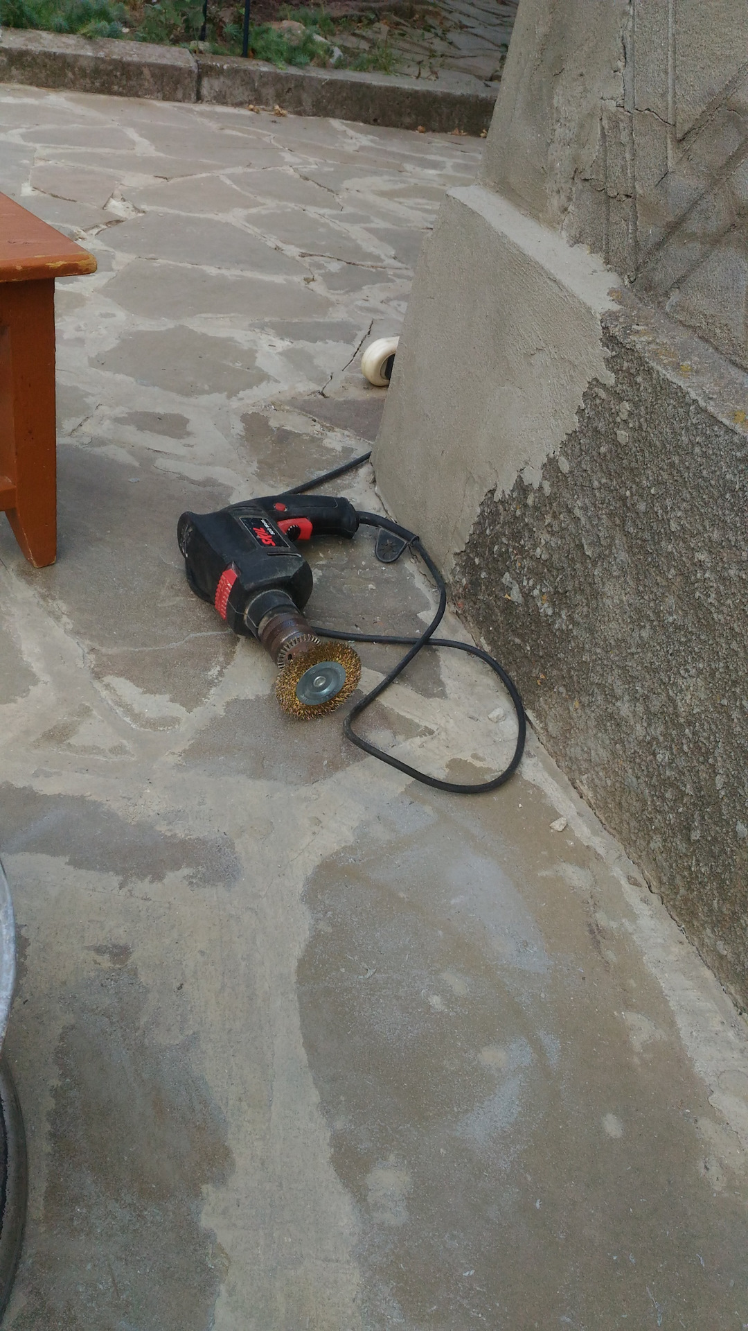 Купила так называемую "обезьяну" на дрель, наждаки, краску, лак. Поехали. Отмыла сначала. Остальное на фото, не судите строго, я не волшебник, я только учусь!))))