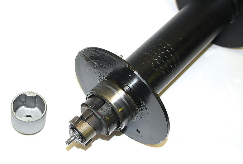 Это самая интересная часть этой лебёдки. Тут сосредоточены все её ноу-хау: сальник, биметаллический подшипник и непривычные торцевые упоры барабана. Сальник и подшипник со стороны мотора хорошо смазаны. Это показательно. Чаще всего недобросовестные производители забывают смазать именно это место.