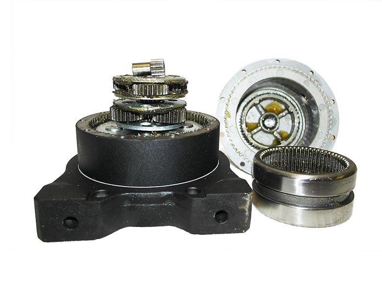 Механизм самого редуктора унаследован от предыдущей серии W. Так что никаких особенных сюрпризов тут ждать не приходится. Консервативная трёхступенчатая конструкция с размыканием внешней шестерни-обоймы первой и второй передачи. Такой вариант не блещет лёгкостью размотки. Редуктор этот восходит к классике. И пусть шестерёнки изменились в размерах, внешний дизайн однозначно напоминает черты Warn. Шестерни и обоймы редуктора выглядят очень прилично. Смазки в редукторе в самый раз.