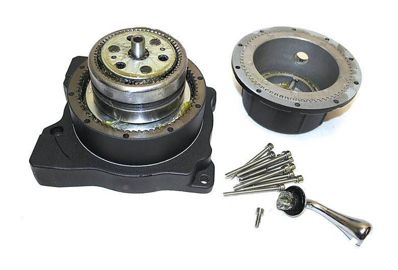 Классический, хорошо зарекомендовавший себя конусный тормоз внутри барабана. Такое решение используется на всех лебёдках Master Winch. Тормозной элемент состоит из трёх волокнистых колодок-секторов. Эта конструкция не любит смазку, излишки которой могут попасть из редуктора. При обслуживании для компенсации износа могут добавляться регулировочные шайбы. Цена ремкомплекта тормоза – 2900 руб.