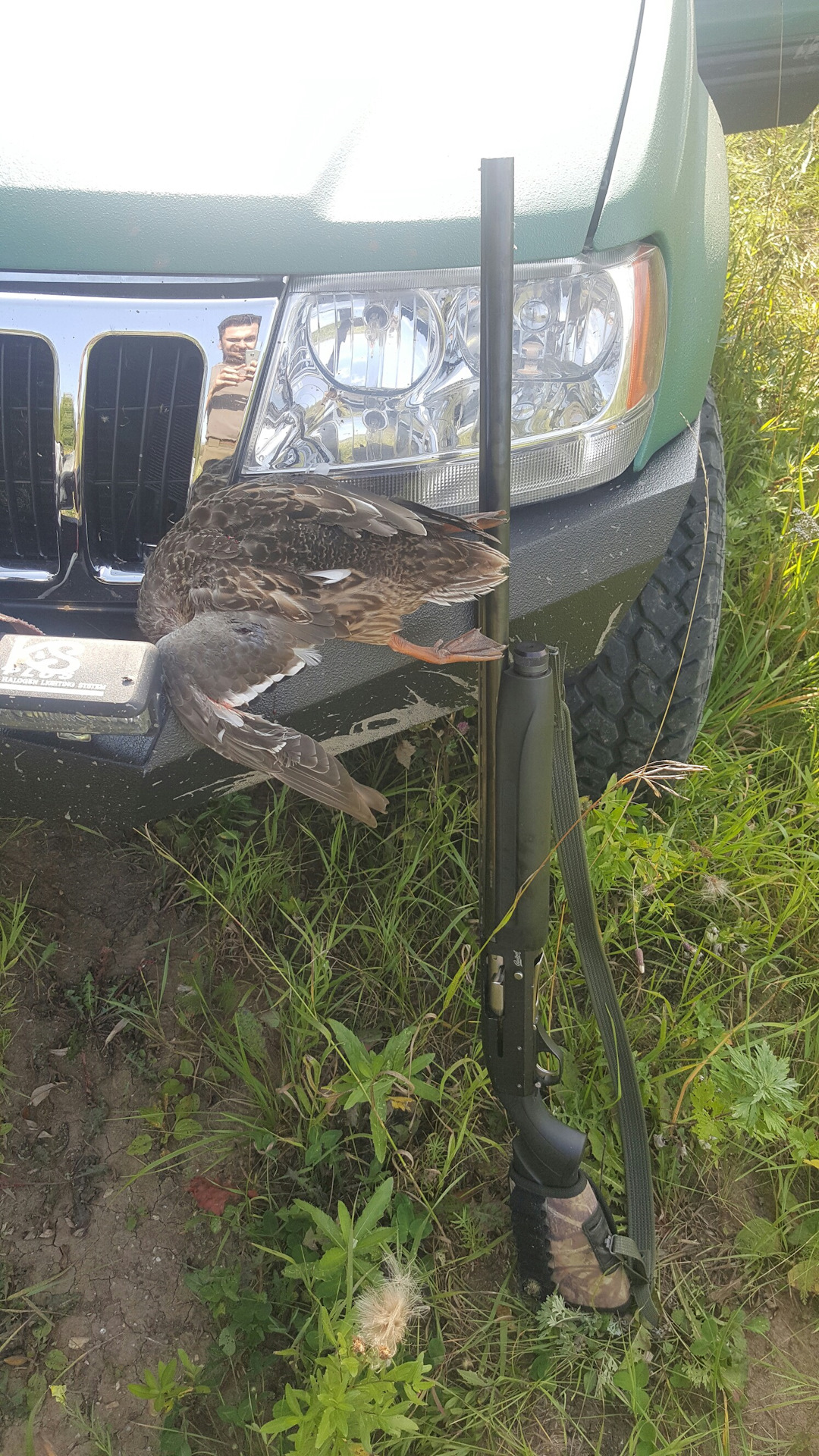Выехал я в пятницу на охоту. Как путний — заранее, чтоб место выбрать — занять ибо места для меня новые. На одном из свёртков съехав с дороги для разведки — по карте была речушка, порезал покрышку переднюю левую о торчащий из грунтовки швеллер. Запаски нет, пит-стоп в виде приехавшего брата и свозившего колесо на шиномонтаж плюс пока делали покрыху сгонявшего на дачу за моей запаской отработал на 100% ) хорошо рядом с трассой и асфальтом ещё был.