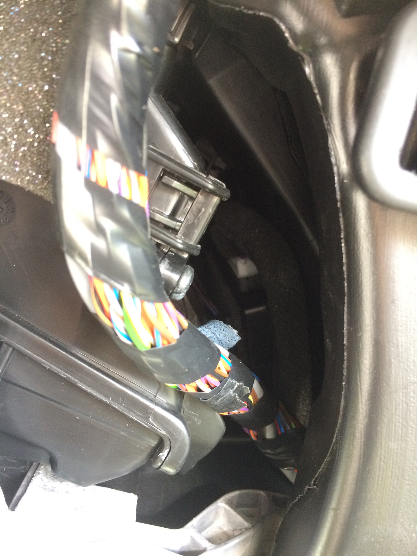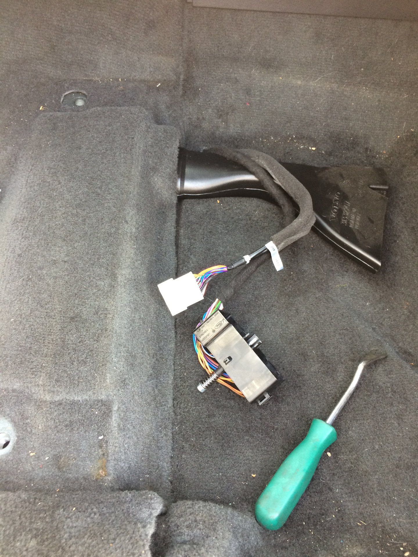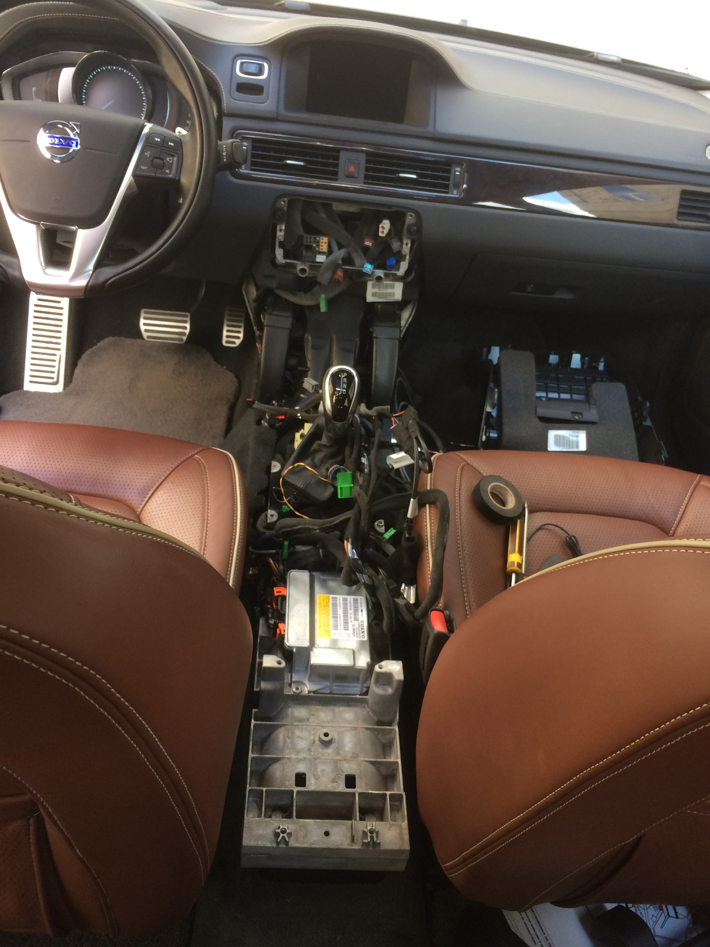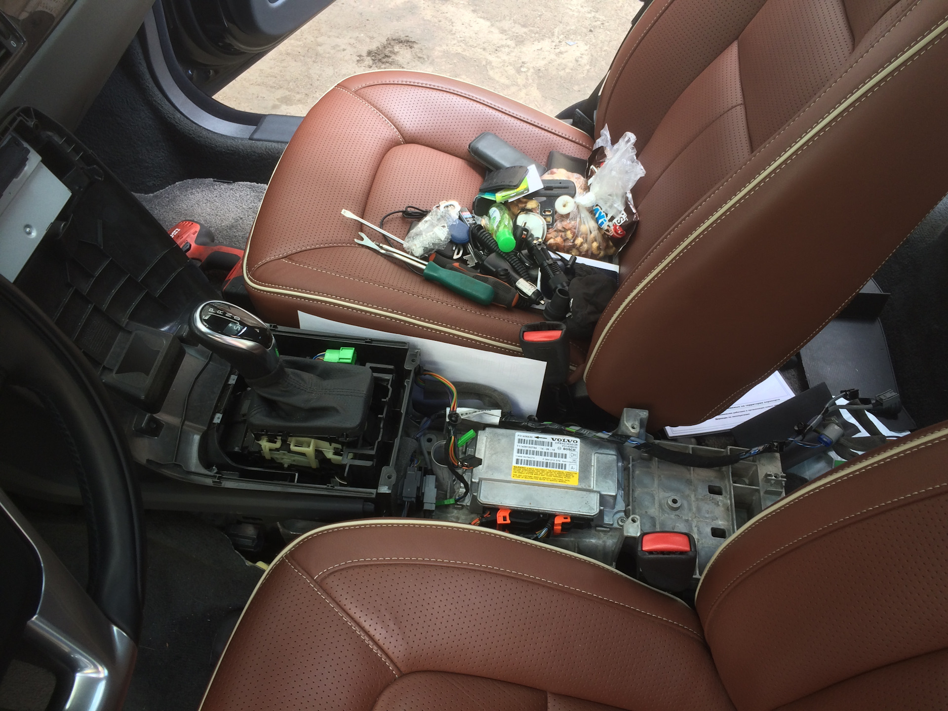 Разобрав центральную консоль, установил блок управления и проложил все кабеля.