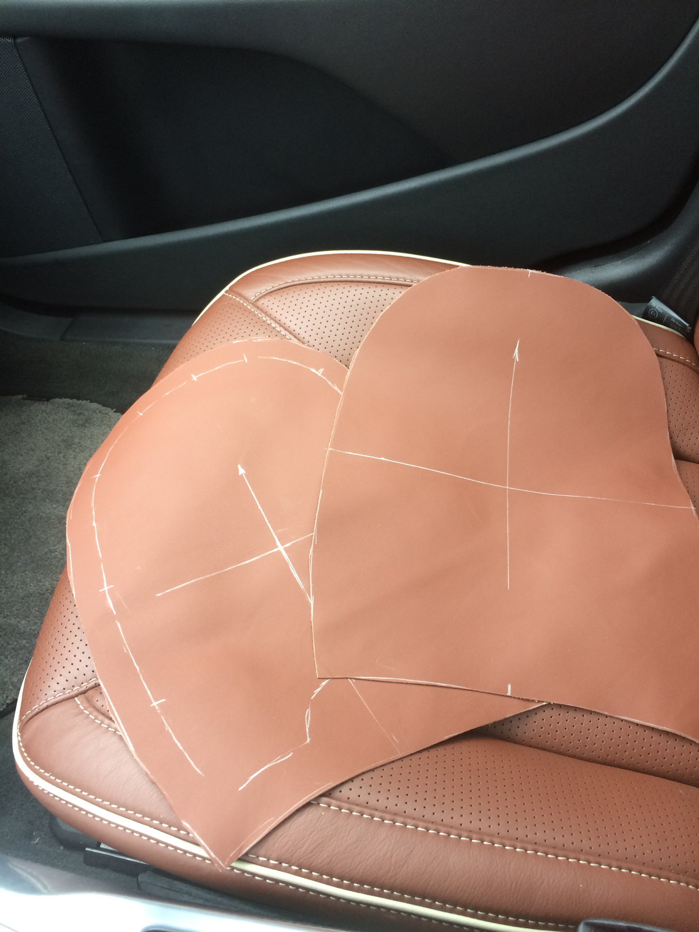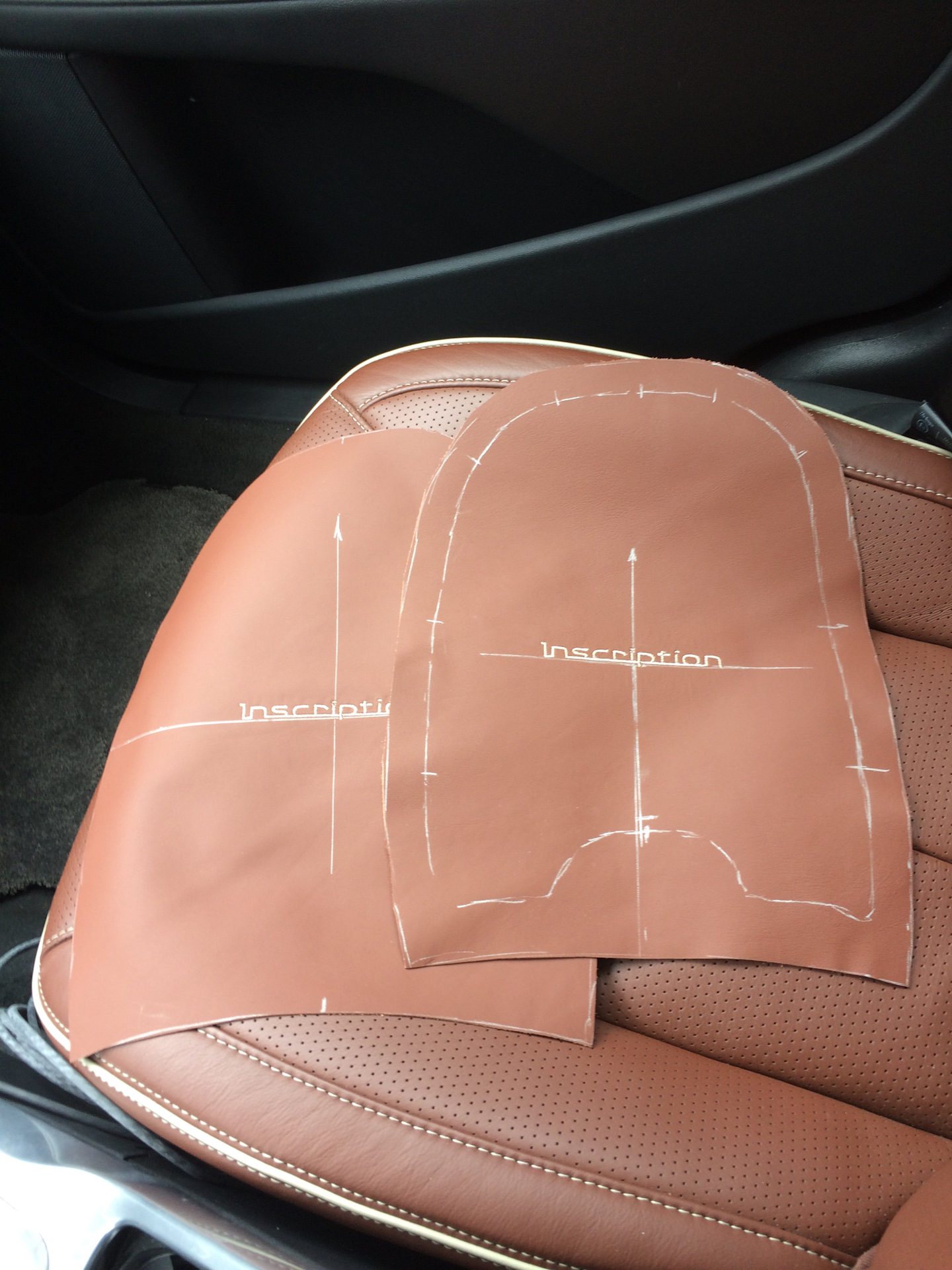 Нашли в итоге кожу один в один от Audi. После того как нашли кожу встала другая проблема — вышивка inscription.