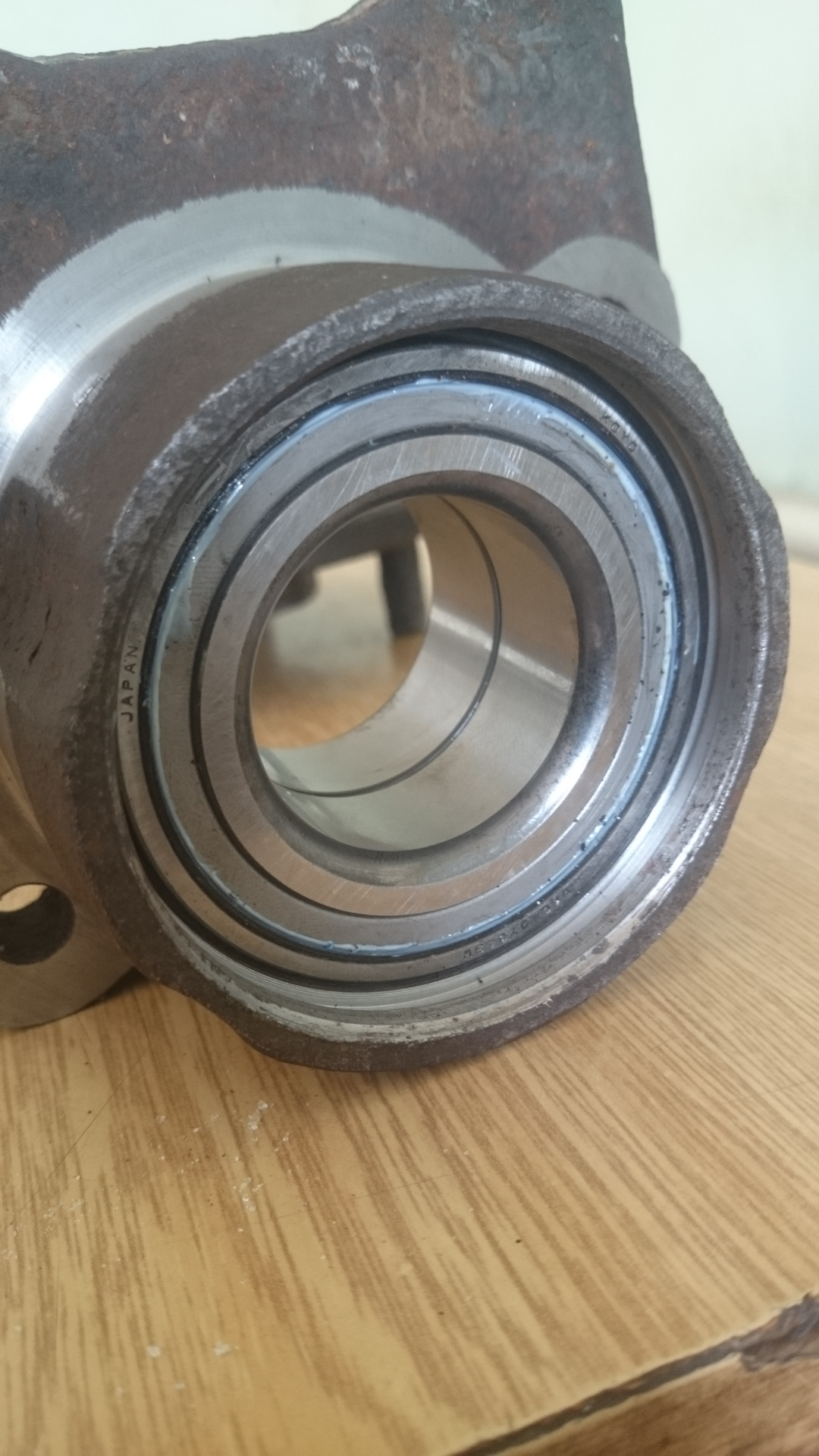 Далее был срочно заказан ещё один подшипник Skf стоимостью уже 3500руб. Замена в ступице происходила дома. Напомню это б/у ступица. В ней стоял оригинальный Timken, который был вполне себе ничего и залюфтил только из-за изношеного пыльника. Аккуратно его удалив был запрессован Skf, который и установлен на машине сейчас.