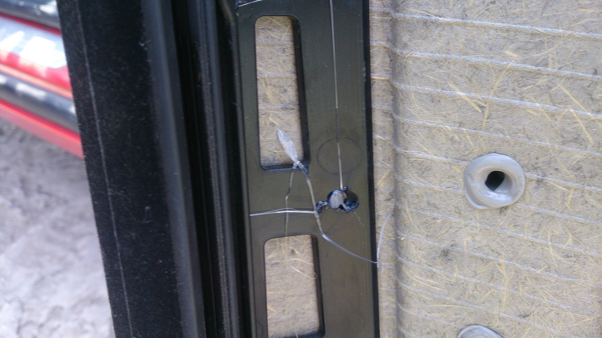 Сделал еще одну вещь. Когда менял колпачки в ограничителях дверей, заметил, что пластиковые крепления обшивки в некоторых местах оторвались от самой обшивки. Поэтому не долго думая взял термопистолет, разобрал снова обшивки и все проклеил.