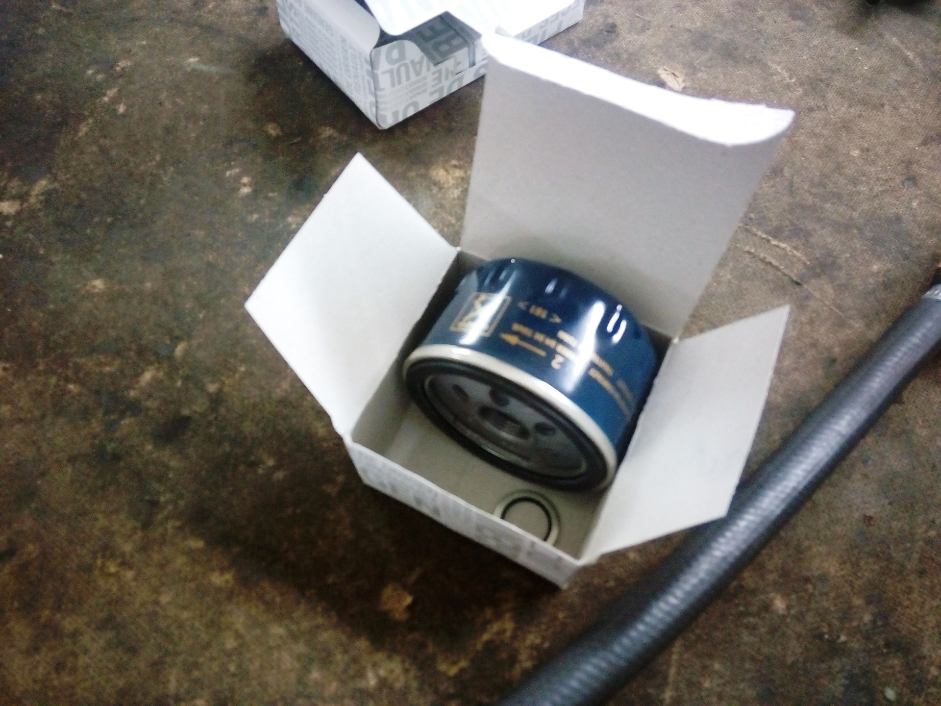 Далее меняем масло. Принесли фильтр и масло. Фильтр такой мелкий. Если сравнивать его по габаритам с ВАЗовским, то он раза в 2 меньше Ладовского. Хрень какая-то.