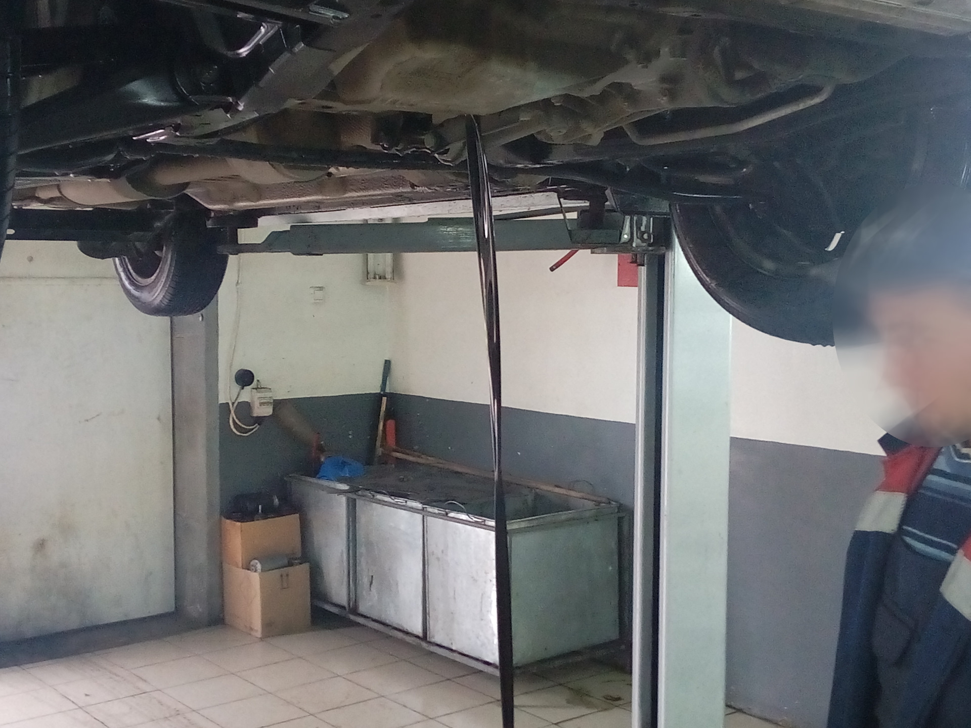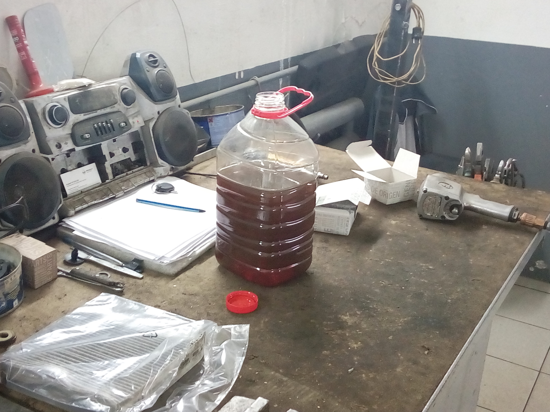 Чет я не увидел тарировку на канистре с маслом? Обыкновенная баклаха из под воды… Кстати, это официальный дилер? Ни фига себе у них обстановка в боксе! Фирмачи мля. Я понимаю, что обстановка в боксе не показатель порядочности и прямых рук слесарей, если что. У нас все ОД в фирменном стиле, однако.