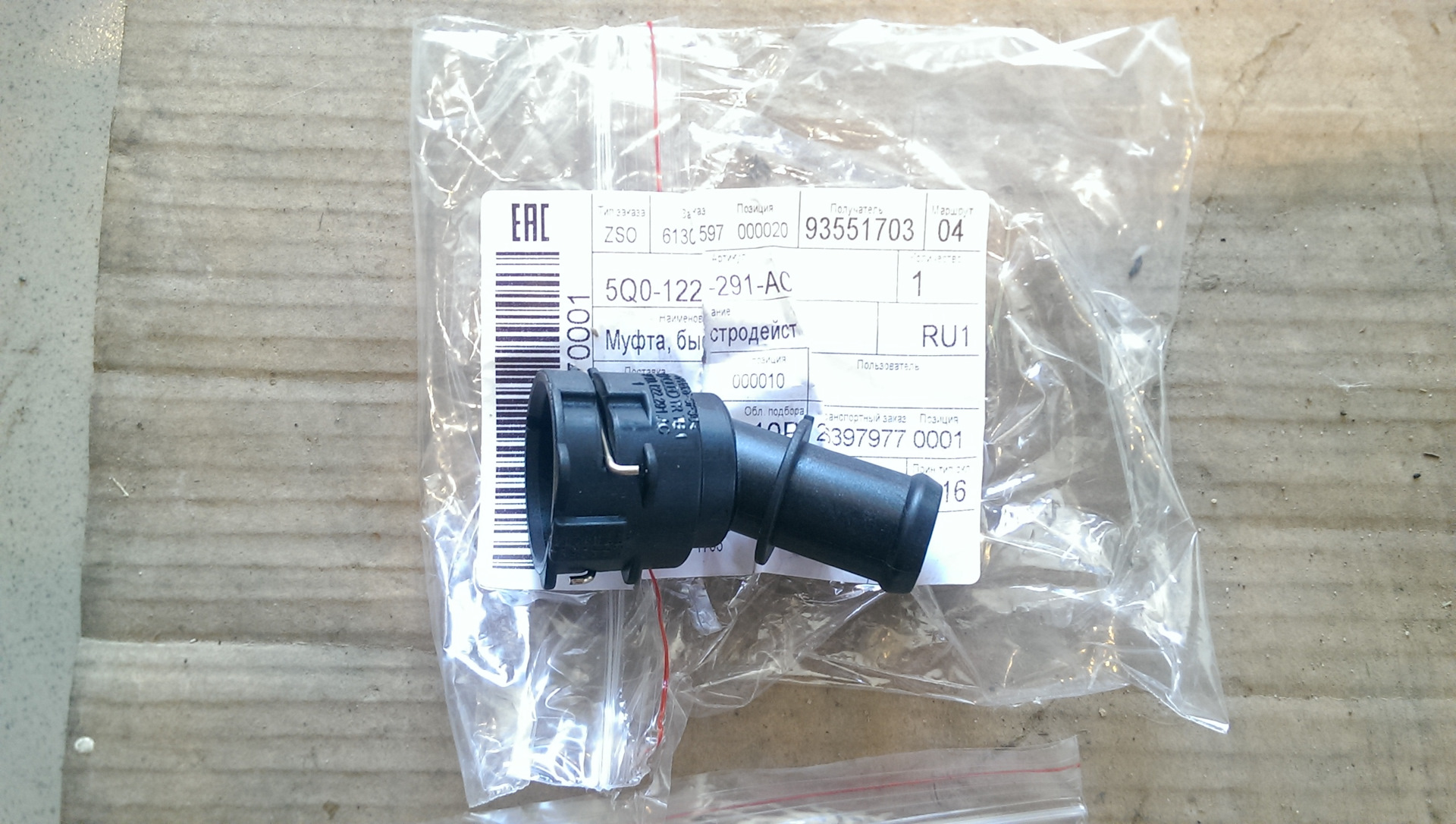 2) Муфта быстросъемная 1шт. 5Q0122291AC полностью в сборе так как отдельно уплотнительное кольцо не продается.
