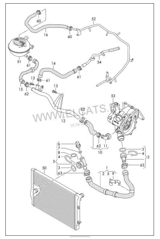 Еще важный момент. Так же всем советую поменять верхнюю раздвоенную муфту 5Q0 122 291 AL, так как она у многих лопалась и начинала течь, она как раз таки почему то не нарисована на схеме.