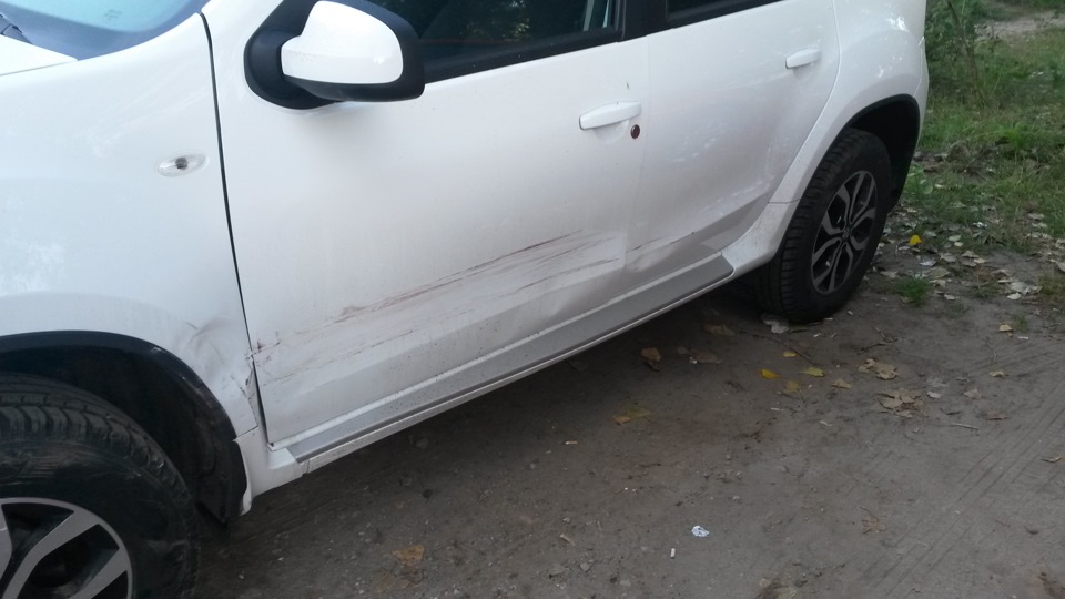 Машине было два месяца, оставил её на парковке во дворе, уехал в отпуск на десять дней. Приехал, а мне сразу в лоб подарок, — Dustera кто-то очень хорошо притер в бампер слева.