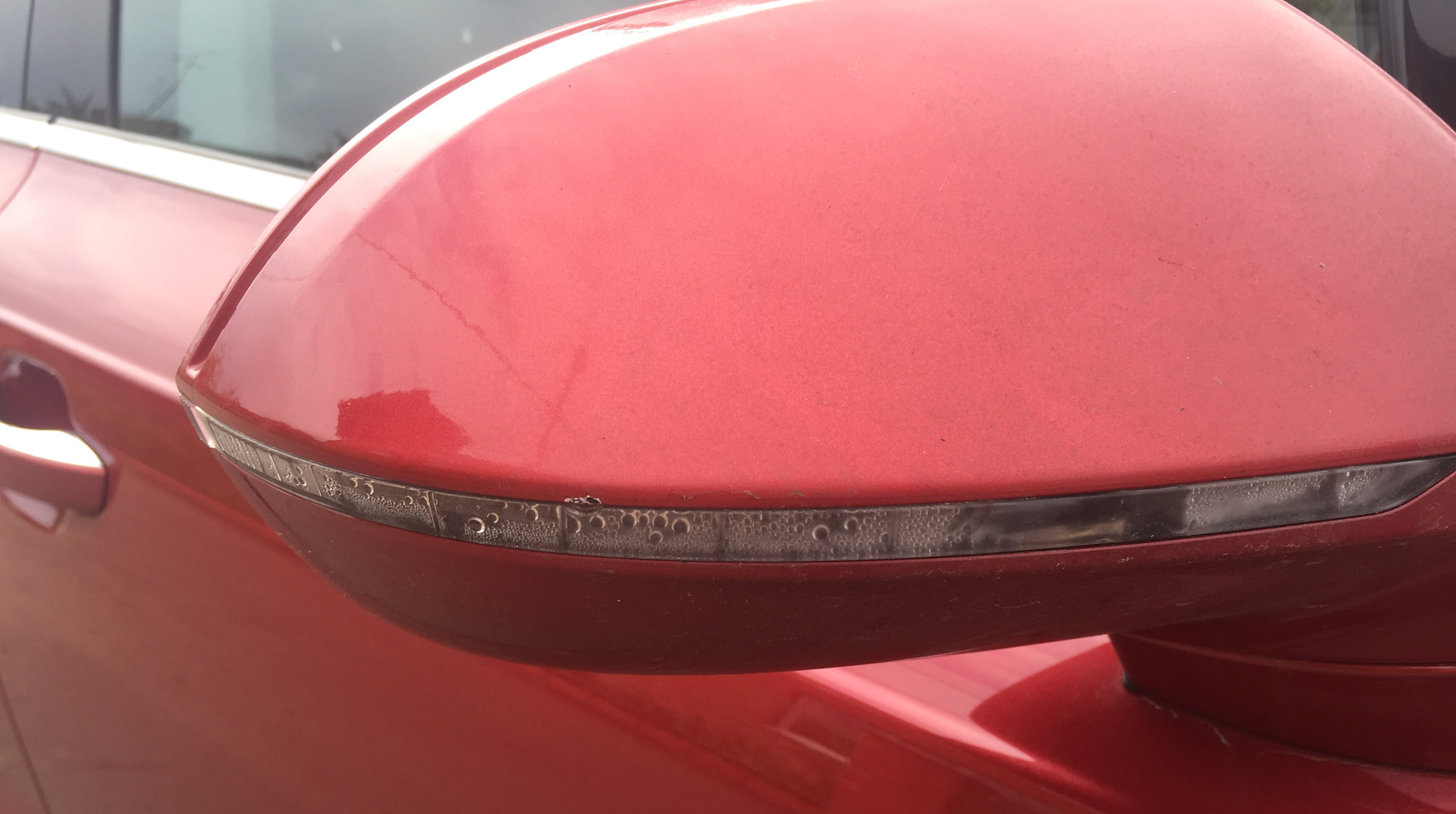 Все началось с того, что в один прекрасный день у меня появилась информация о неисправности "Правого бокового указателя поворота". Добравшись до дома я решил проверить, что не так. Включив аварийку и подойдя к зеркалу увидел, что правый поворотник потерял интенсивность своего свечения и появился конденсат внутри повторителя.