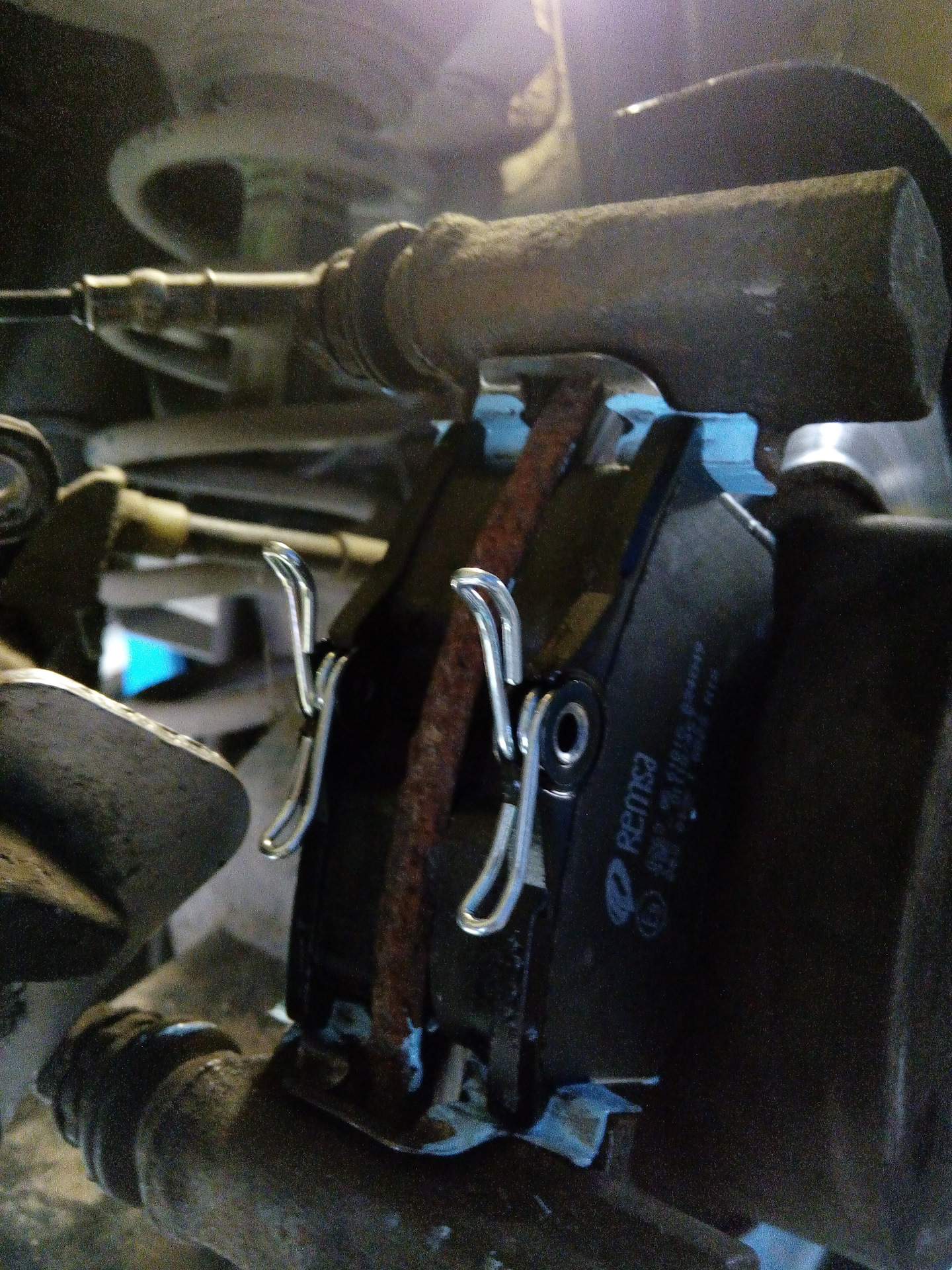 Из-за одной закисшей колодки, которая стерлась практически полностью, пришлось менять задние колодки. А могли бы ещё походить.