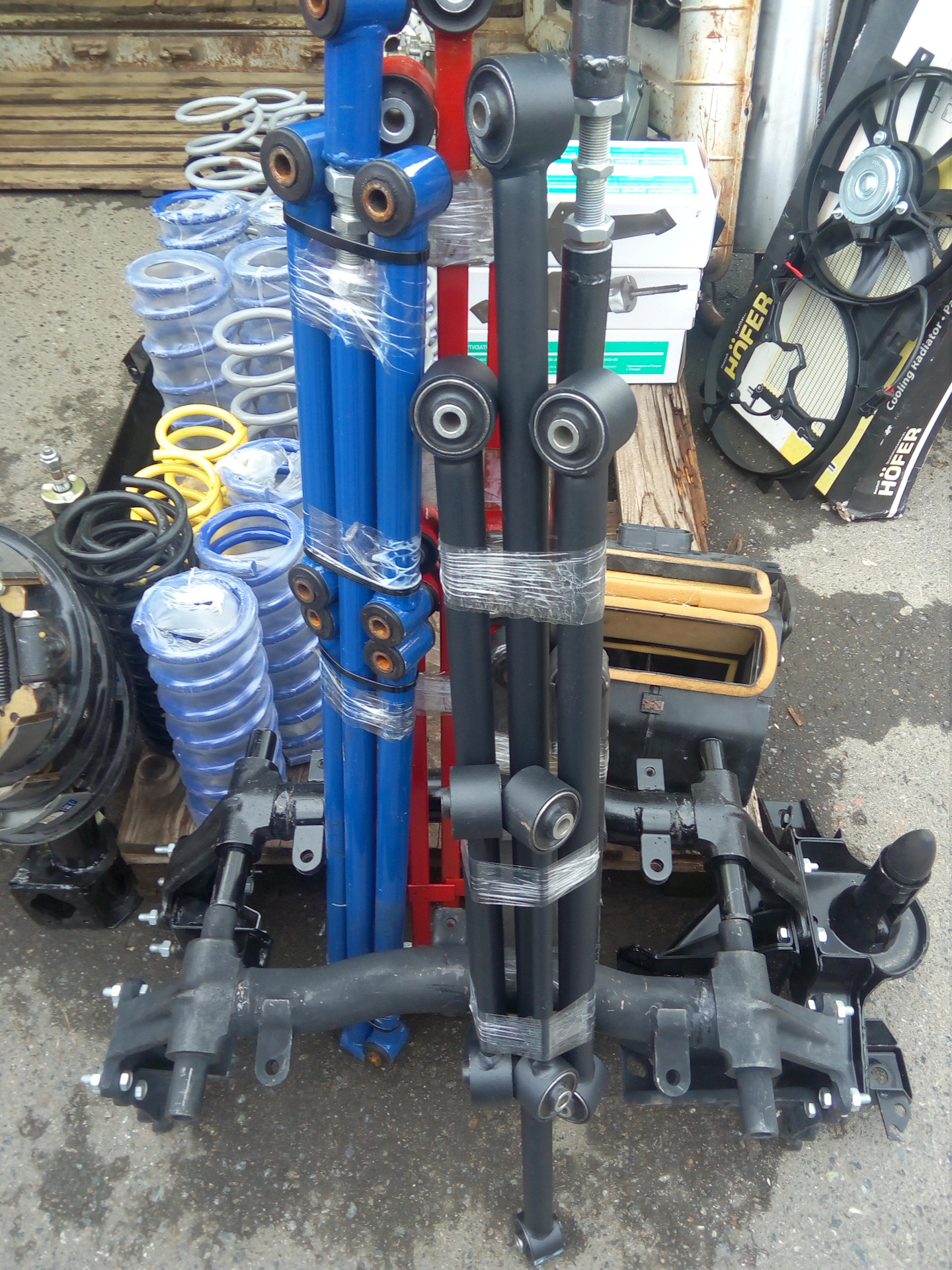 синии — это Нива -Экстрим, у меня короткие тяги из этого набора до сих пор стоят… Сделаны очень качественно, но металл такой же как и на конвеерных -гнулся легко… Погнув длинные и панару, заменил их тягами от Ф-Дизайна (продольные там прямоугольного сечения); стоят дорого, но они того стоят…