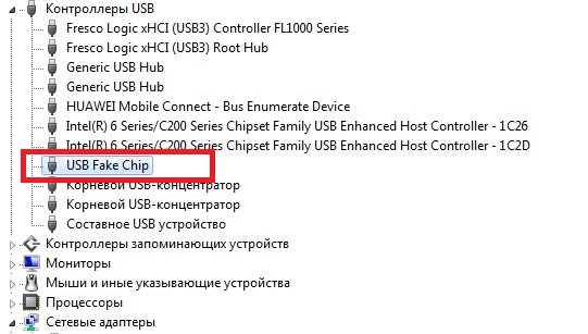 Подключаем прибор и видим что он распознался как USB Fake Chip