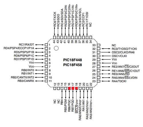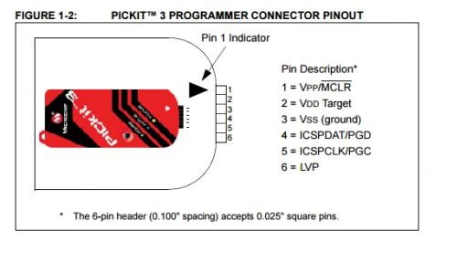 Если программировать программатором PicKit3 то распиновка выхода с программатора следующая