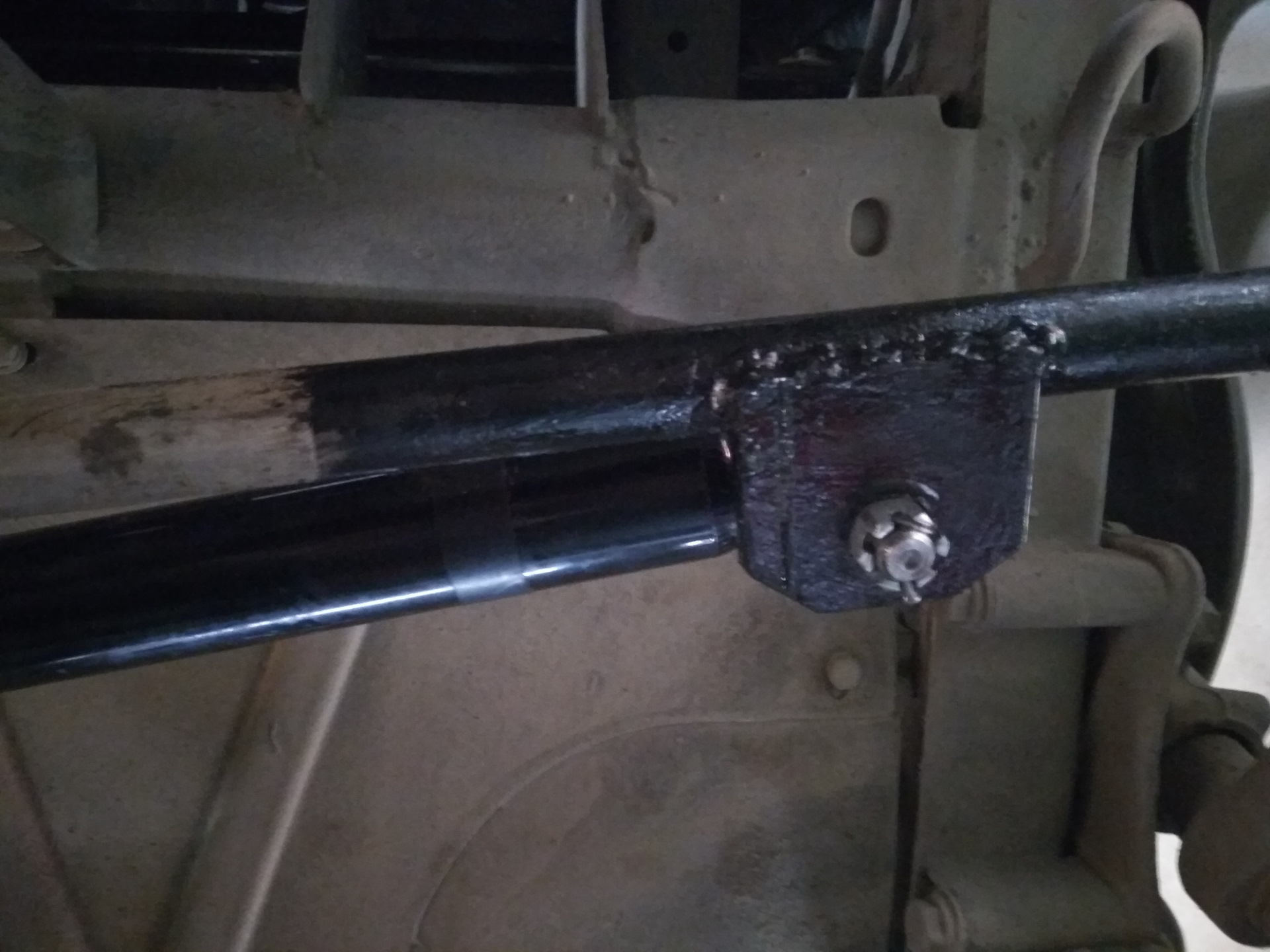 У меня на машине стоит такой же, точнее стоял, я его демонтировал, т.к. чуть-чуть увеличились крепежные отверстия и он немного стал ходить в них. С ним руль почти не долбило, поэтому сразу чувствуется его отсутствие. Крепил так же, но хочу попробовать его установить теперь по принципу тяга — мост, говорят так правильней, хотя на ТЛК 80 установлен ка у тебя…