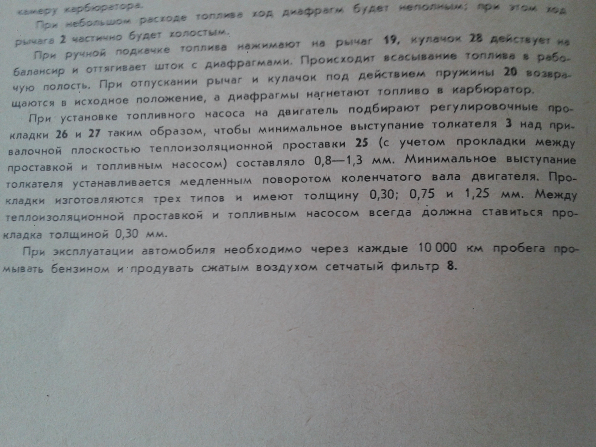 В комплекте с бензонасосом идут прокладки толщиной 0,3 0,7 1,25 мм ими мы регулируем выступание толкателя из теплоизоляционной проставки. Он должен быть в пределах 0,8-1,3 мм. Прокладки как раз и предназначены чтобы выставлять его выступание. Но между бензонасосом и теплоизоляционной простовкой всегда должна стоять прокладка 0,3 мм.