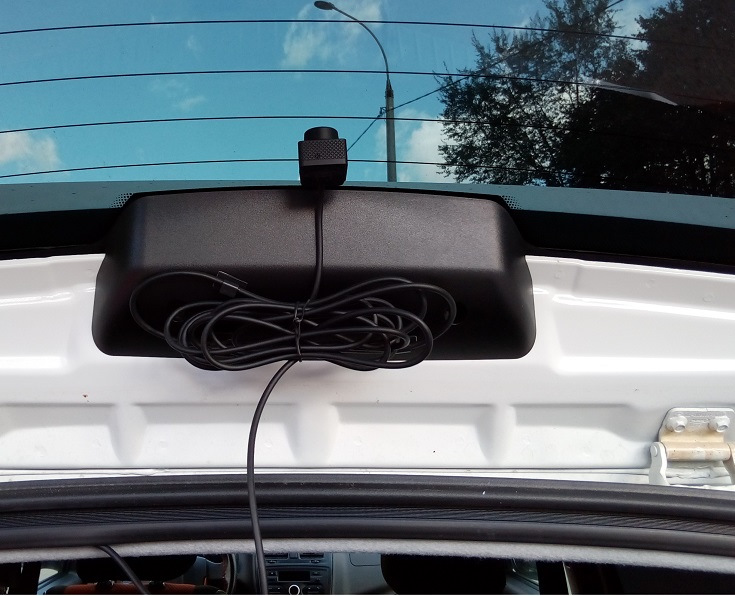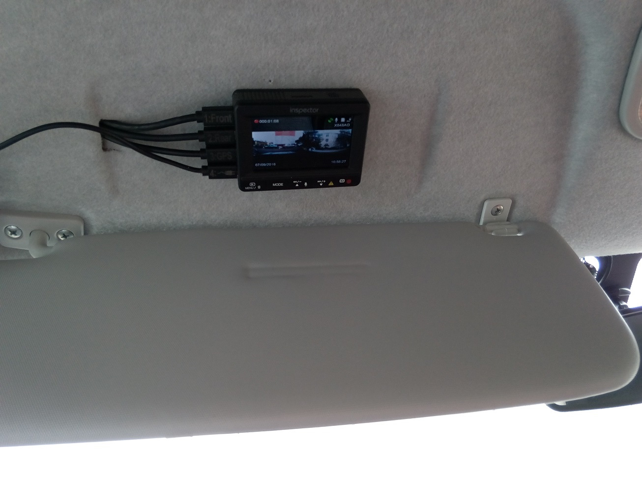 Регистратор уже второй год ездит со мной в машине и служит верой и правдой, если не считать, что летом перегревается и мудрит :( . Регистратор Inspector Scirocco с двумя отдельными камерами и GPS приёмником, плюс питание — 4 провода, жуть :) Камеры приклеил перед зеркалом заднего вида и сзади под дополнительный стопсигнал на двери багажника. Регистратор поддерживает функции для записи во время стоянок, типа датчик движения (перед камерой) и т.п. Поэтому всегда его старался оставлять на стоянках при походах в магазины, мало ли.