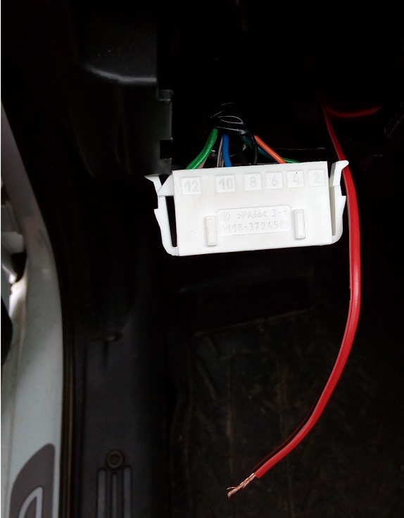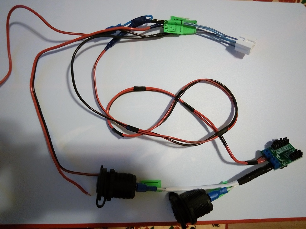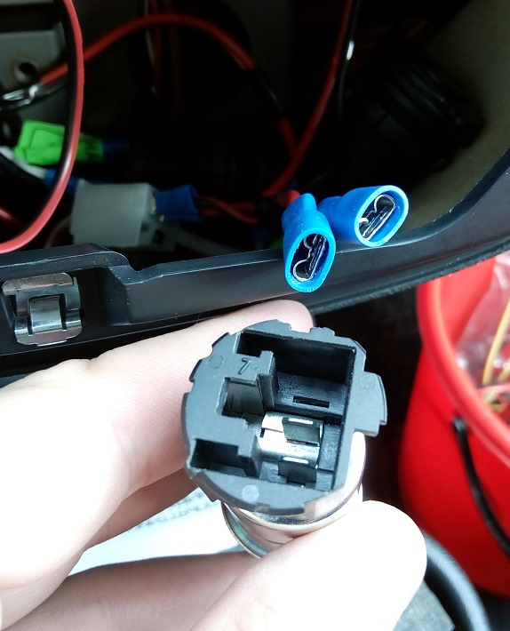 Там маленько другие клеммы идут. Вот фото клемм прикуривателя: кстати белый — подсветка.