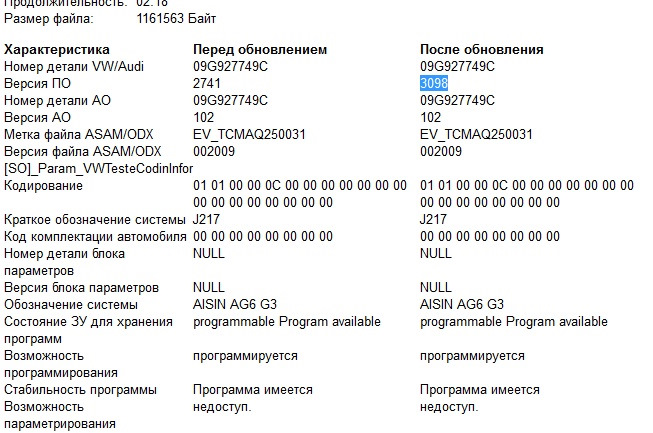 Вчера 20.09.2016 мной было произведено обновление ПО блока 09G927749C с прошивки 2741 которая стояла с завода на протяжении почти двух лет, и отличалась своей не очень приятной работай ( а именно неприятным переключение с 1-ой на 2-ю передачу), на версию 3098 которая вышла на диске Flashdaten_Skoda_2016-06-08.