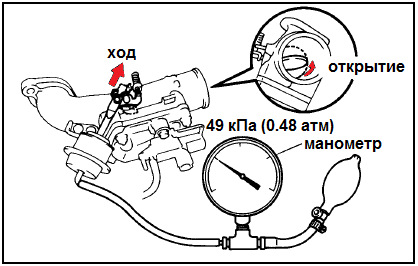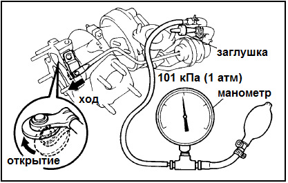 Схемы показаны для снятых клапанов, но можно проверять и прямо на месте, смотря на движение тяг. Например, при достижении давления в +1 атмосферу, тяга от клапана EBV оживает и начинает «вылазить из грибка», на который подается давление.