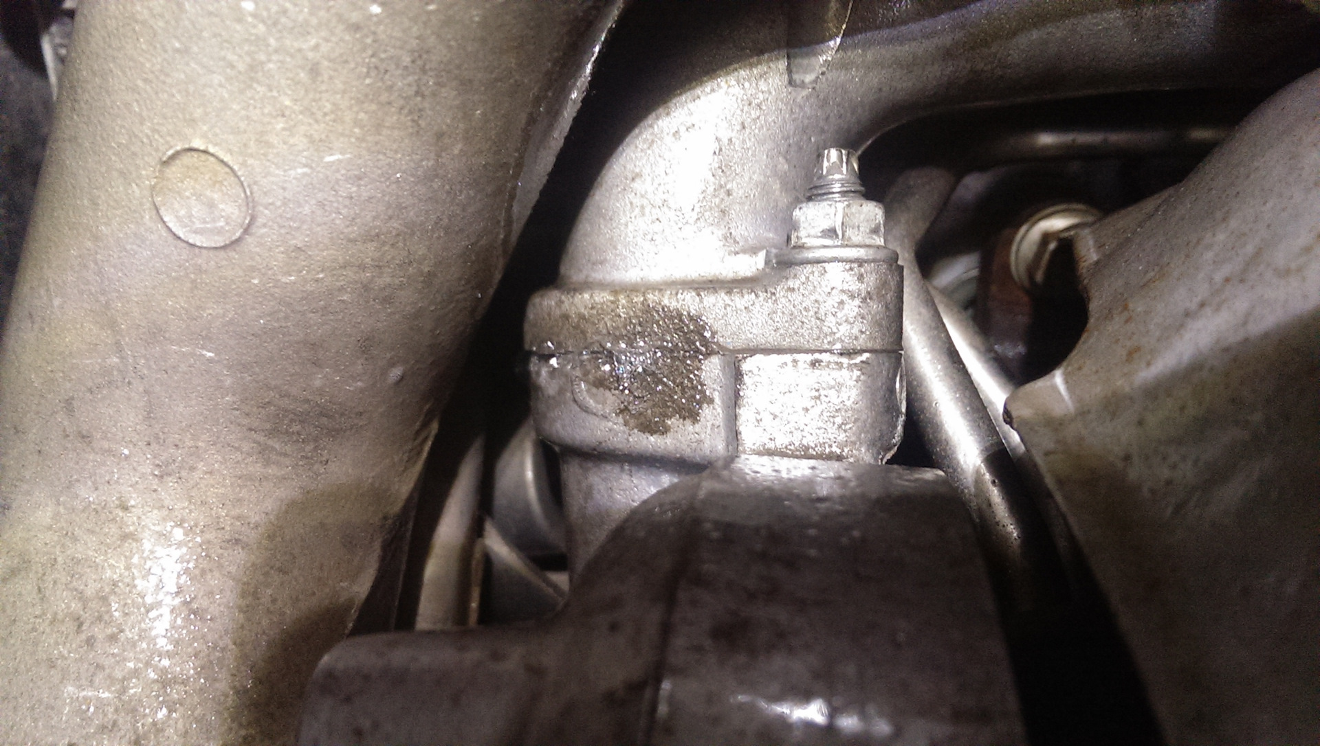 На картинке это выглядит очень красочно и наглядно, на самом деле этот бочонок расположен очень глубоко в недрах мотора, поэтому пришлось лезть туда рукой с телефоном и сделать сто тысяч фотографий до тех пор, пока не поймал что-то подобное: