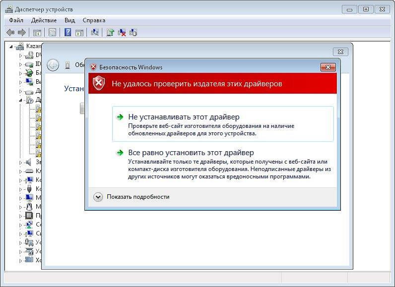 — на вопрос о невозможности установить издателя драйверов отвечаем "Все равно установить"