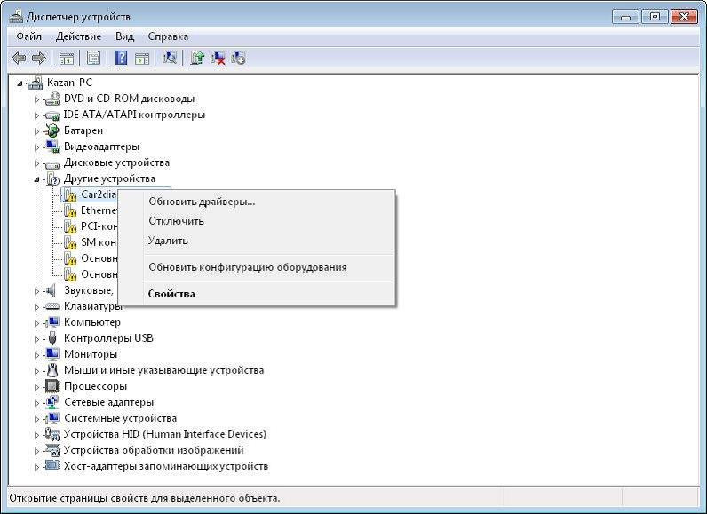 — после загрузки заходим в "Параметры" — "Диспетчер устройств", и видим устройство "HEX-USB", щелкаем по нему правой кнопкой, выбираем "Обновить драйвер"