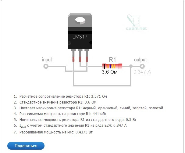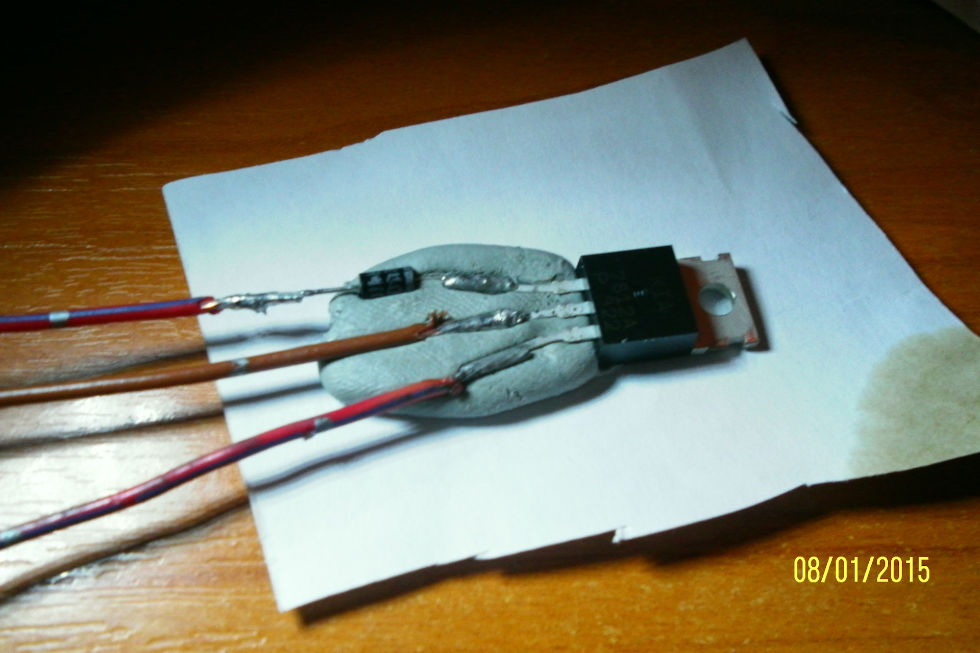 В плане питания — был собран стабилизатор тока, для этого потребовалось сам стабилизатор тока LM317T, резистор на 8 Ом и так же был установлен конденсатор на 63v 1000nF, сам же стабилизатор был подключен к стабилизатору напряжения, .