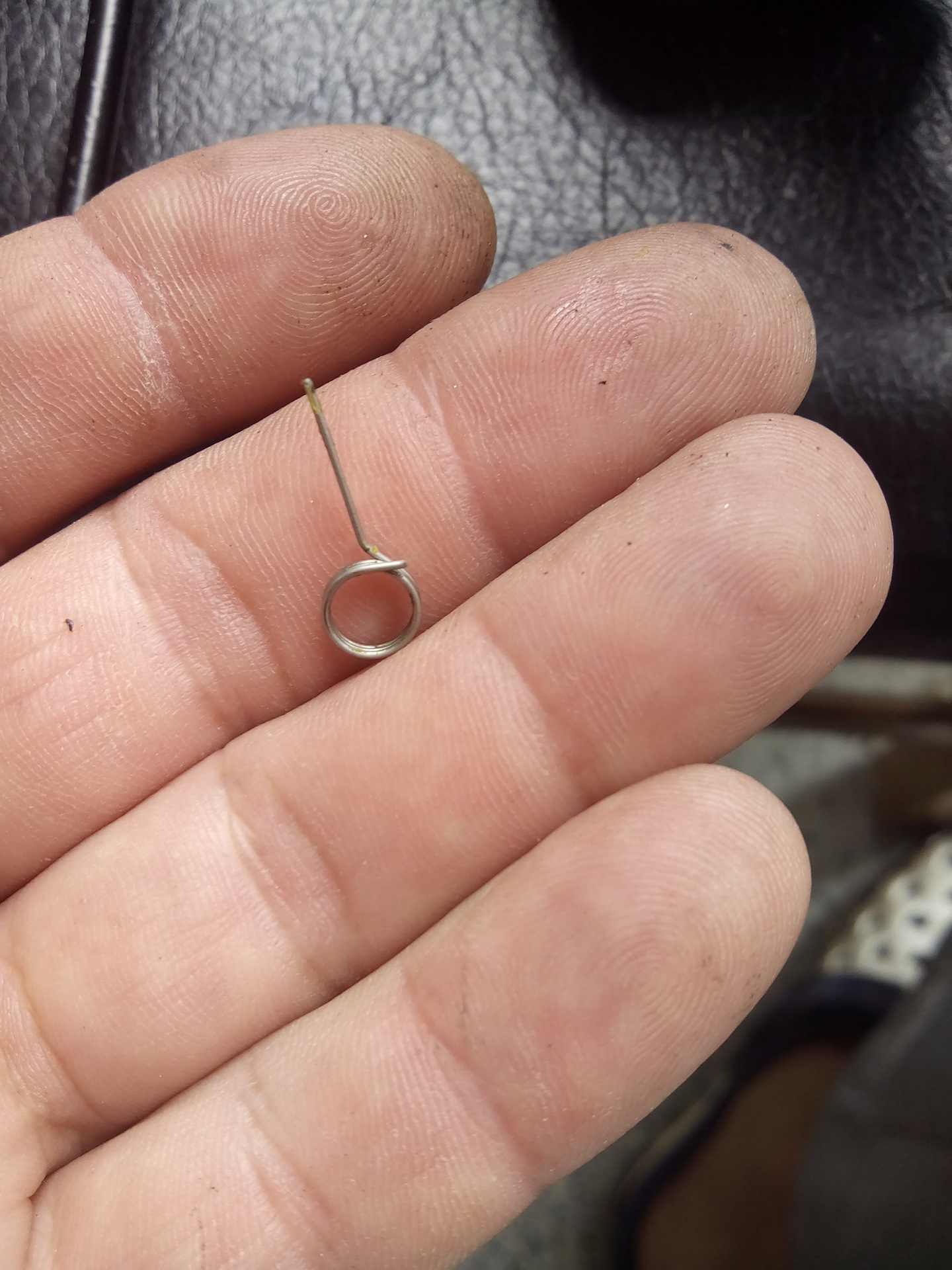 Блин точно похожая поломка была недавно тут на драйве, не могу найти но у него тоже точь-в точь отломалась эта пружинка!