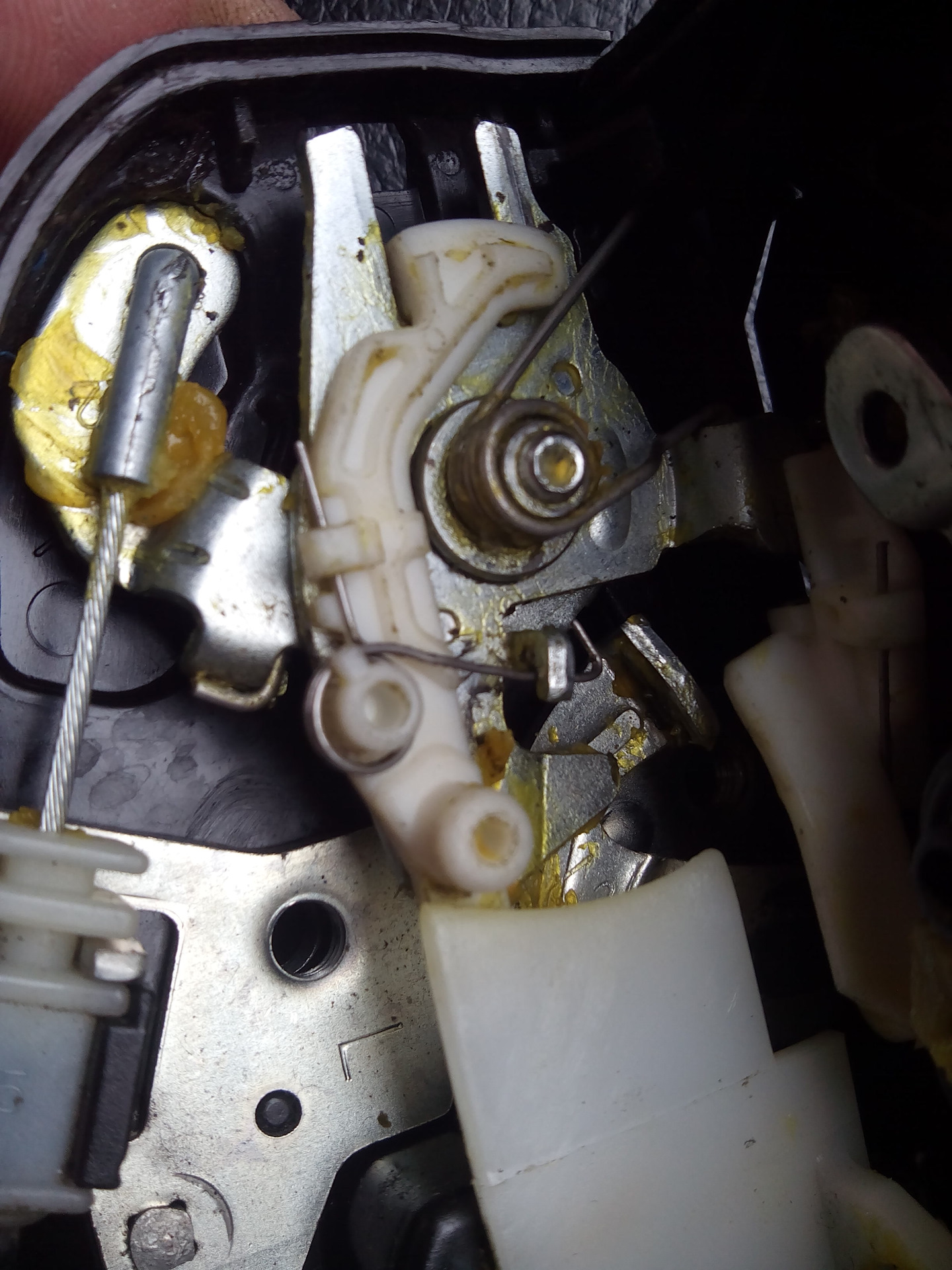Здравствуйте спасибо за решение (отчет) по ремонту замка. На днях тоже ручка отказала… после двух дней (спектакля открывания двери водителя ) решился разобрать дверь думал по старинке тросик или пыль но (выяснил что при блокеровки двери и разблокировке не отягивается плосмаса в мехонизме замка ) замок пытался вскрыть но остоновился все собрал обратно (( Теперь сново разберем