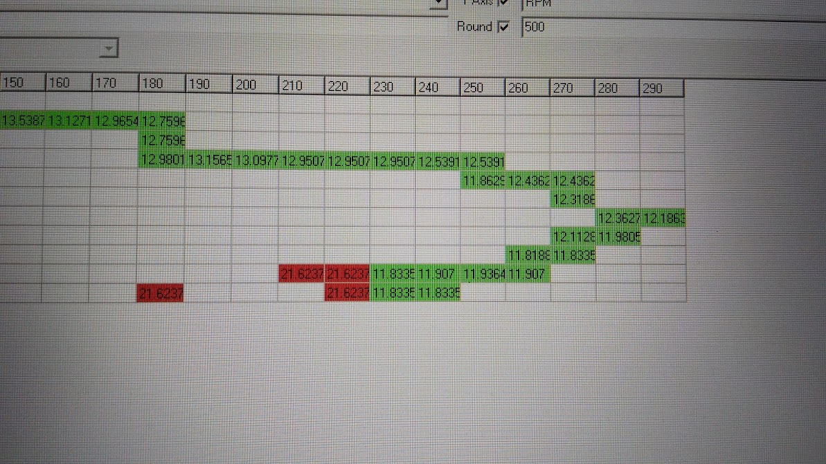 Далее, вчера, при выкатах, все шло отлично. Смесь попадает в ячейки как надо, прям красота да и только. Спустя 40 минут прогонов, я настроил наддув в пике 1.7 со спадом к 1.3. Смесь получилась как на фотографии 1.
